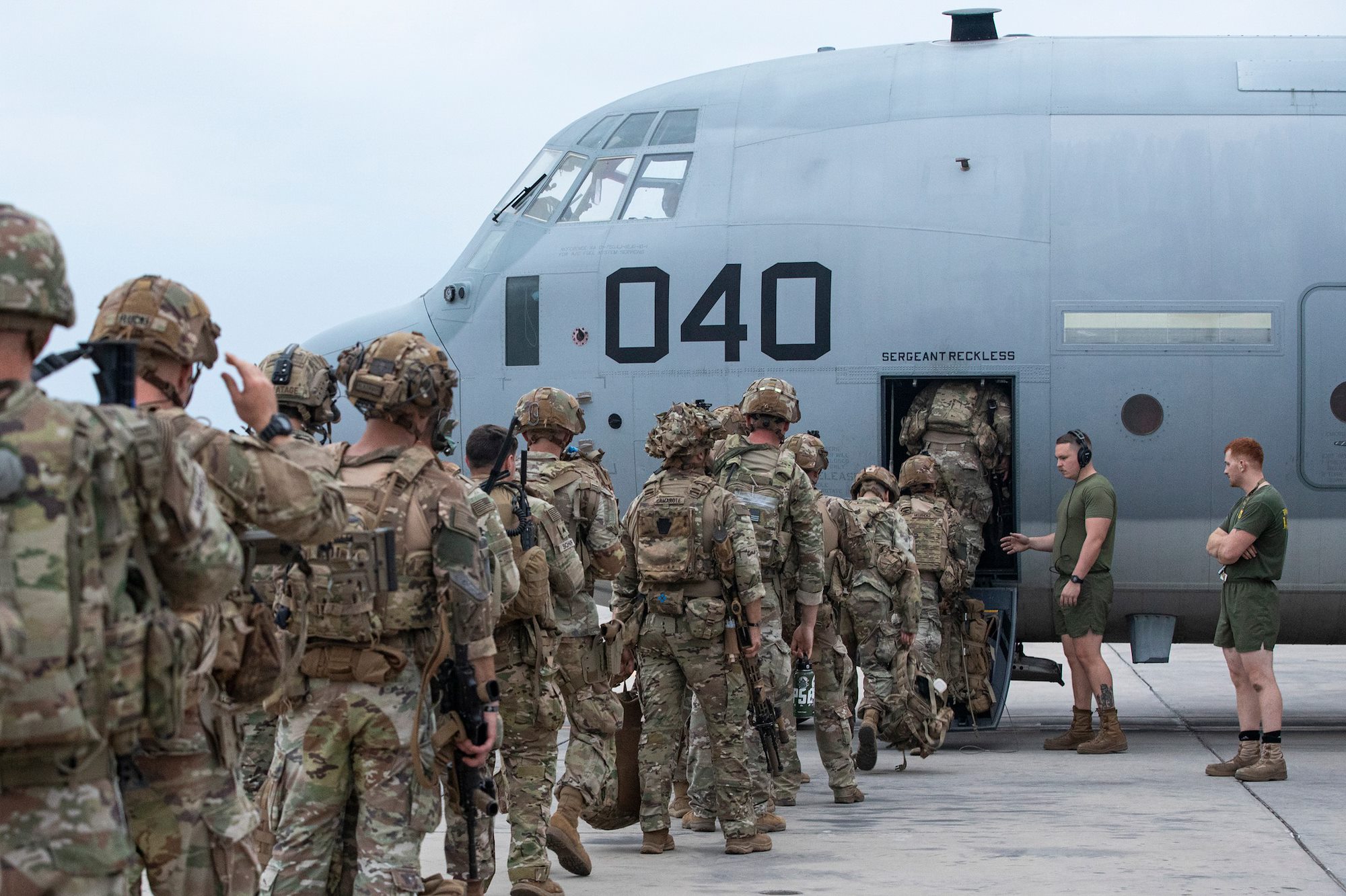 U.S. Army soldiers of the East Africa Response Force (EARF), assigned to Combined Joint TaskForce – Horn of Africa (CJTF-HOA) board a C-130 aircraft at Camp Lemonnier, Djibouti to partner with the Tanzania People’s Defense Force (TPDF) in exercise Justified Accord 2025 (JA25), Feb. 10, 2024. JA25 increases multinational interoperability in support of humanitarian assistance and crisis response, prepares regional partners for United Nations and African Union missions and builds readiness for the U.S. joint force. Led by U.S. Army Southern European Task Force, Africa (SETAF-AF), and hosted in Kenya, Djibouti and Tanzania, this year's exercise incorporates personnel from 15 nations. JA25 is U.S. Africa Command's largest exercise in East Africa, with approximately 1,500 participants. The exercise runs from Feb. 10–21, 2025. (U.S. Army photo by Sgt. Michael Knight)