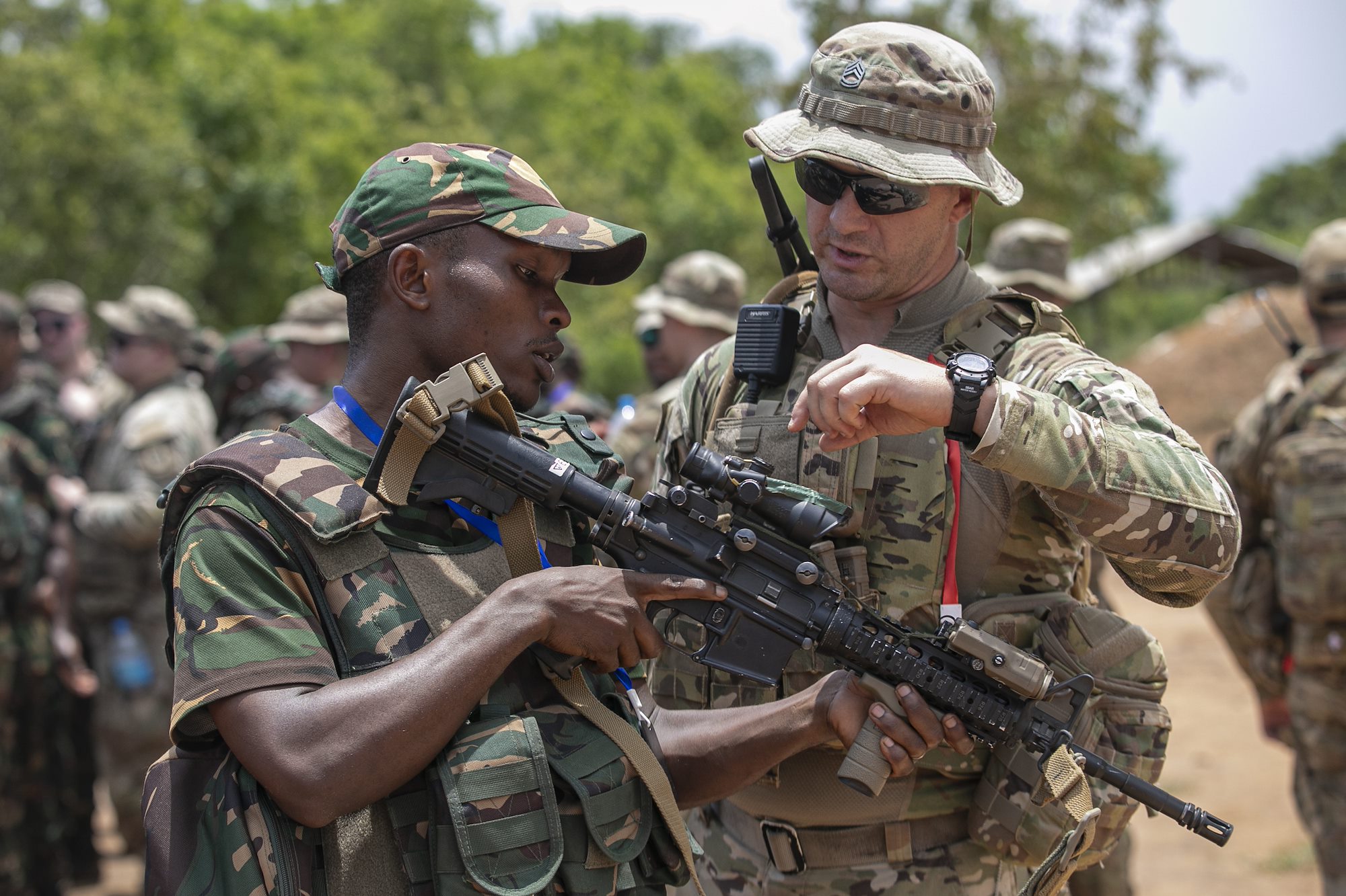 U.S. Army soldiers and members of the Tanzania People’s Defense Force (TPDF) conduct weapons clearing on day one of exercise Justified Accord 2025 (JA25) at the Msata Military Training Base in Msata, Tanzania, Feb. 11, 2025. JA25 is the premier U.S. Africa Command (USAFRICOM) exercise in East Africa, designed to enhance multinational combat readiness, strengthen crisis response capabilities and empower allies and partners in the region. Led by U.S. Army Southern European Task Force, Africa (SETAF-AF) and hosted by Kenya, Djibouti and Tanzania, JA25 integrates high-intensity training scenarios that sharpen warfighting skills, increase operational reach and enhance the ability to execute complex joint and multinational operations. (U.S. Army photo by Sgt. Michael Knight)