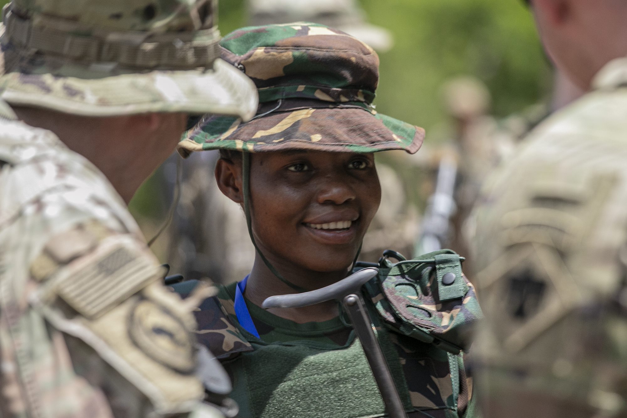 U.S. Army soldiers with the East Africa Response Force (EARF), assigned to Combined Joint Task Force – Horn of Africa (CJTF-HOA) greet a member of the Tanzania People’s Defense Force (TPDF) during day one of exercise Justified Accord 2025 (JA25), at the Msata Military Training Base in Msata, Tanzania, Feb. 11, 2025. JA25 is the premier U.S. Africa Command (USAFRICOM) exercise in East Africa, designed to enhance multinational combat readiness, strengthen crisis response capabilities and empower allies and partners in the region. Led by U.S. Army Southern European Task Force, Africa (SETAF-AF) and hosted by Kenya, Djibouti and Tanzania, JA25 integrates high-intensity training scenarios that sharpen warfighting skills, increase operational reach and enhance the ability to execute complex joint and multinational operations. (U.S. Army photo by Sgt. Michael Knight)