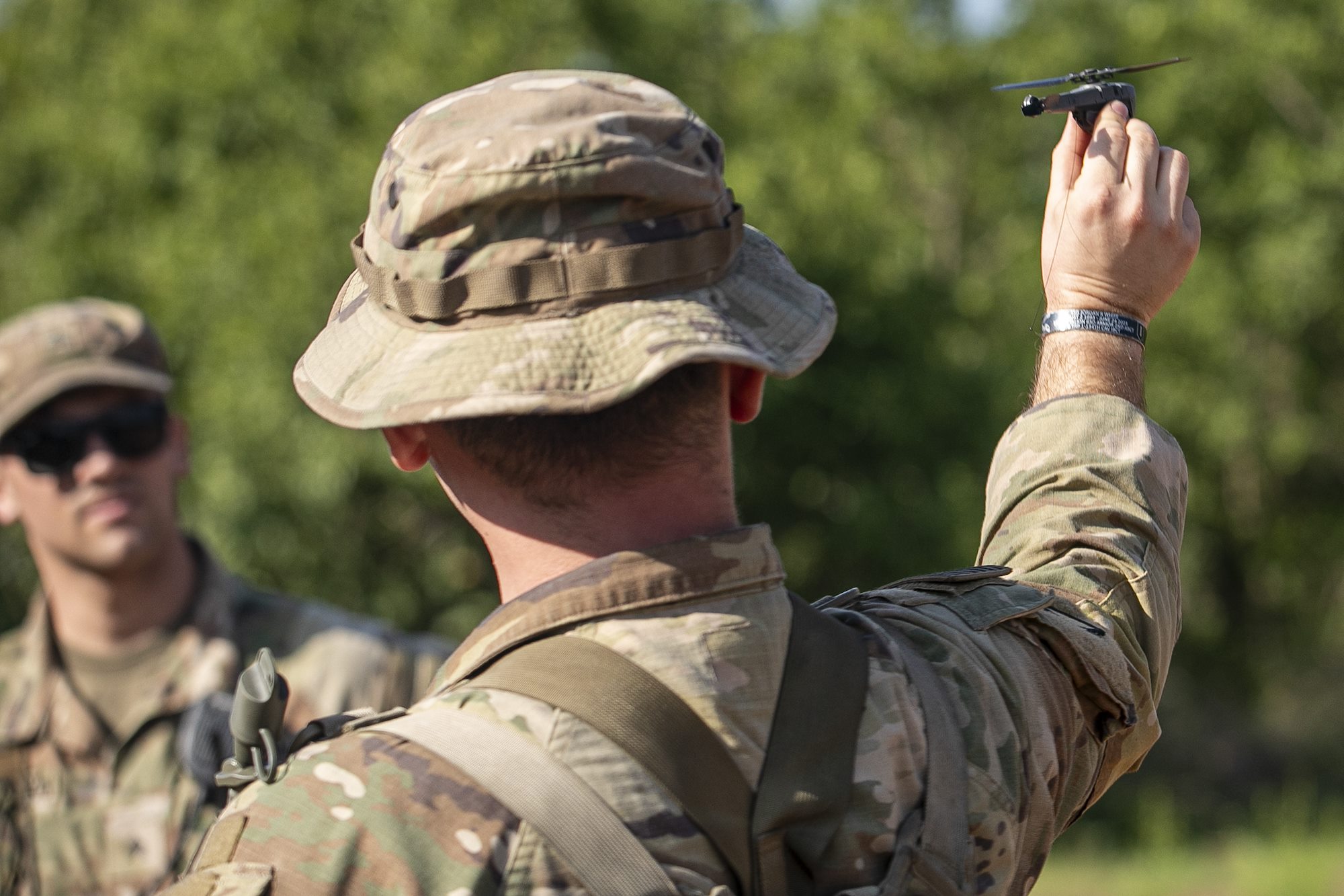 U.S. Army Nebraska National Guard soldiers demonstrate using a Black Hornet 3 reconnaissance drone with the Tanzania People’s Defense Force (TPDF) on day two of exercise Justified Accord 2025 (JA25), at the Msata Military Training Base in Msata, Tanzania, Feb. 12, 2025. JA25 is the premier U.S. Africa Command (USAFRICOM) exercise in East Africa, designed to enhance multinational combat readiness, strengthen crisis response capabilities and empower allies and partners in the region. Led by U.S. Army Southern European Task Force, Africa (SETAF-AF) and hosted in Kenya, Djibouti and Tanzania, JA25 integrates high-intensity training scenarios that sharpen warfighting skills, increase operational reach and enhance the ability to execute complex joint and multinational operations. The exercise runs from Feb. 10–21, 2025. (U.S. Army photo by Sgt. Michael Knight)
