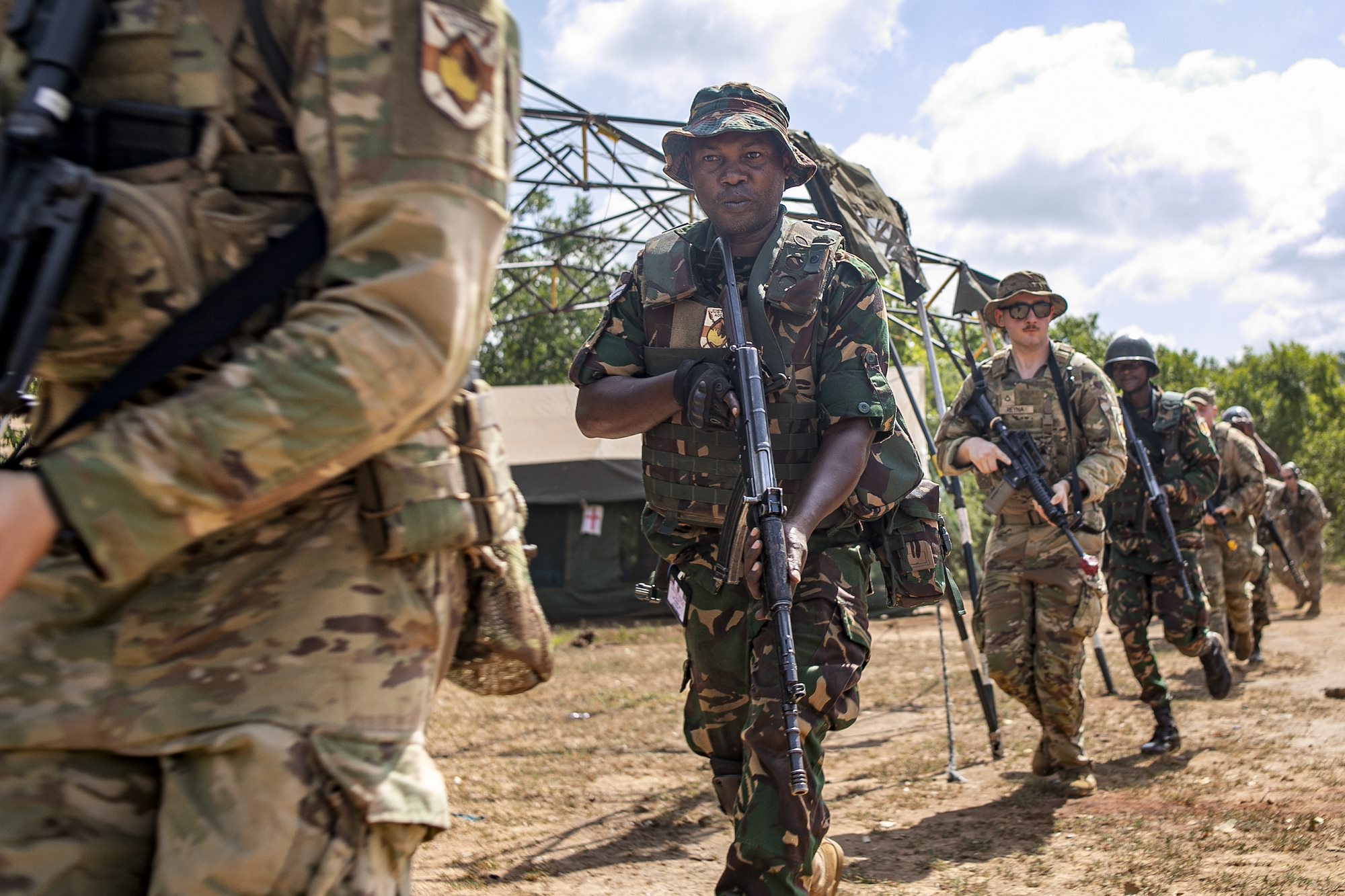 U.S. Army soldiers of the the East Africa Response Force (EARF), assigned to Combined Joint Task Force – Horn of Africa (CJTF-HOA) and Tanzania People’s Defense Force (TPDF) service members begin a patrol to identify improvised explosive devices (IED) during day three of exercise Justified Accord 2025 (JA25) at the Msata Military Training Base, Msata, Tanzania, Feb. 13, 2025. JA25 is the premier U.S. Africa Command (USAFRICOM) exercise in East Africa, designed to enhance multinational combat readiness, strengthen crisis response capabilities and empower allies and partners in the region. Led by U.S. Army Southern European Task Force, Africa (SETAF-AF) and hosted in Kenya, Djibouti and Tanzania, JA25 integrates high-intensity training scenarios that sharpen warfighting skills, increase operational reach and enhance the ability to execute complex joint and multinational operations. The exercise runs from Feb. 10–21, 2025. (U.S. Army photo by Sgt. Michael Knight)