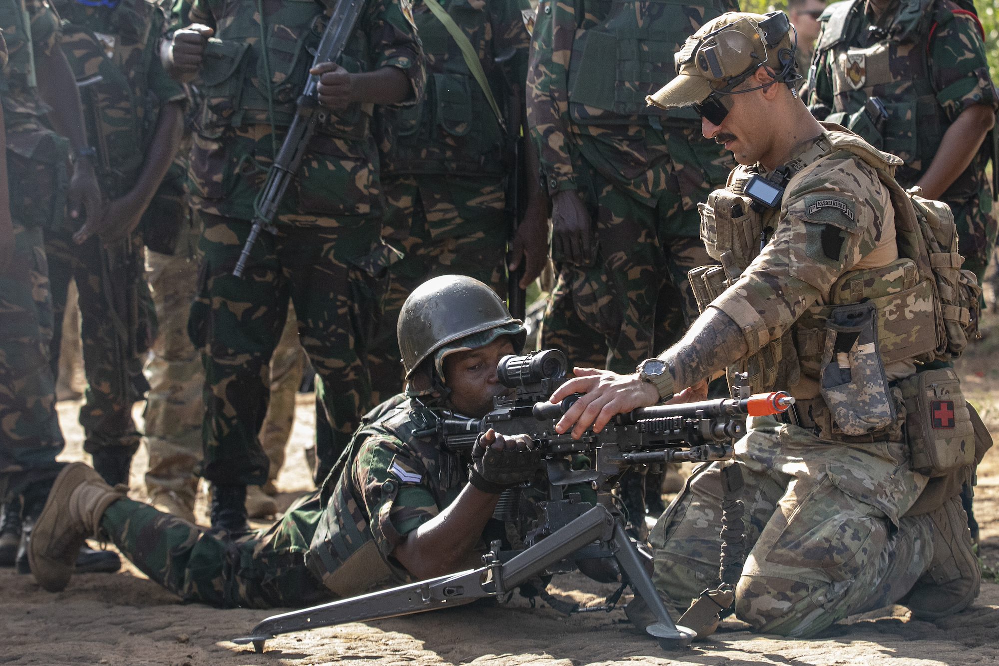 U.S. Army soldiers with the East Africa Response Force (EARF), assigned to Combined Joint Task Force – Horn of Africa (CJTF-HOA), join U.S. Army Southern European Task Force, Africa (SETAF-AF), and the Tanzania People’s Defense Force (TPDF) conduct weapon fundamentals utilizing M240 machine guns with blank-fire ammunition during exercise Justified Accord 2025 (JA25) at the Msata Military Training Base in Msata, Tanzania, Feb. 12, 2025. JA25 is the premier U.S. Africa Command (USAFRICOM) exercise in East Africa, designed to enhance multinational combat readiness, strengthen crisis response capabilities and empower allies and partners in the region. Led by U.S. Army Southern European Task Force, Africa (SETAF-AF) and hosted in Kenya, Djibouti and Tanzania, JA25 integrates high-intensity training scenarios that sharpen warfighting skills, increase operational reach and enhance the ability to execute complex joint and multinational operations. The exercise runs from Feb. 10–21, 2025. (U.S. Army photo by Sgt. Michael Knight)