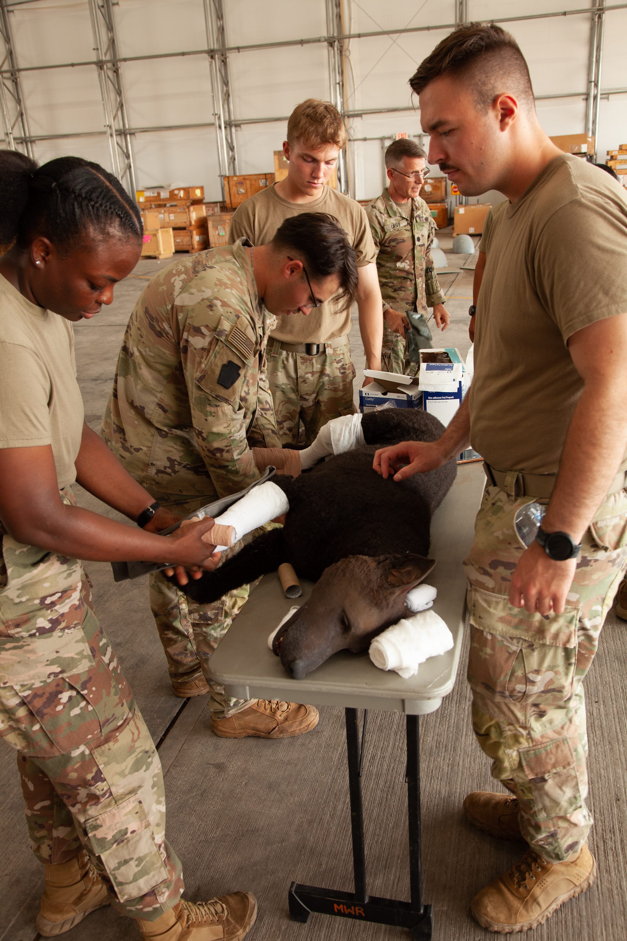 TF Paxton Medics train with Marines, Air Force, and French Security Forces on K9 Tactical Combat Casualty Care. 26 Mar. 2024, Djibouti, Africa.