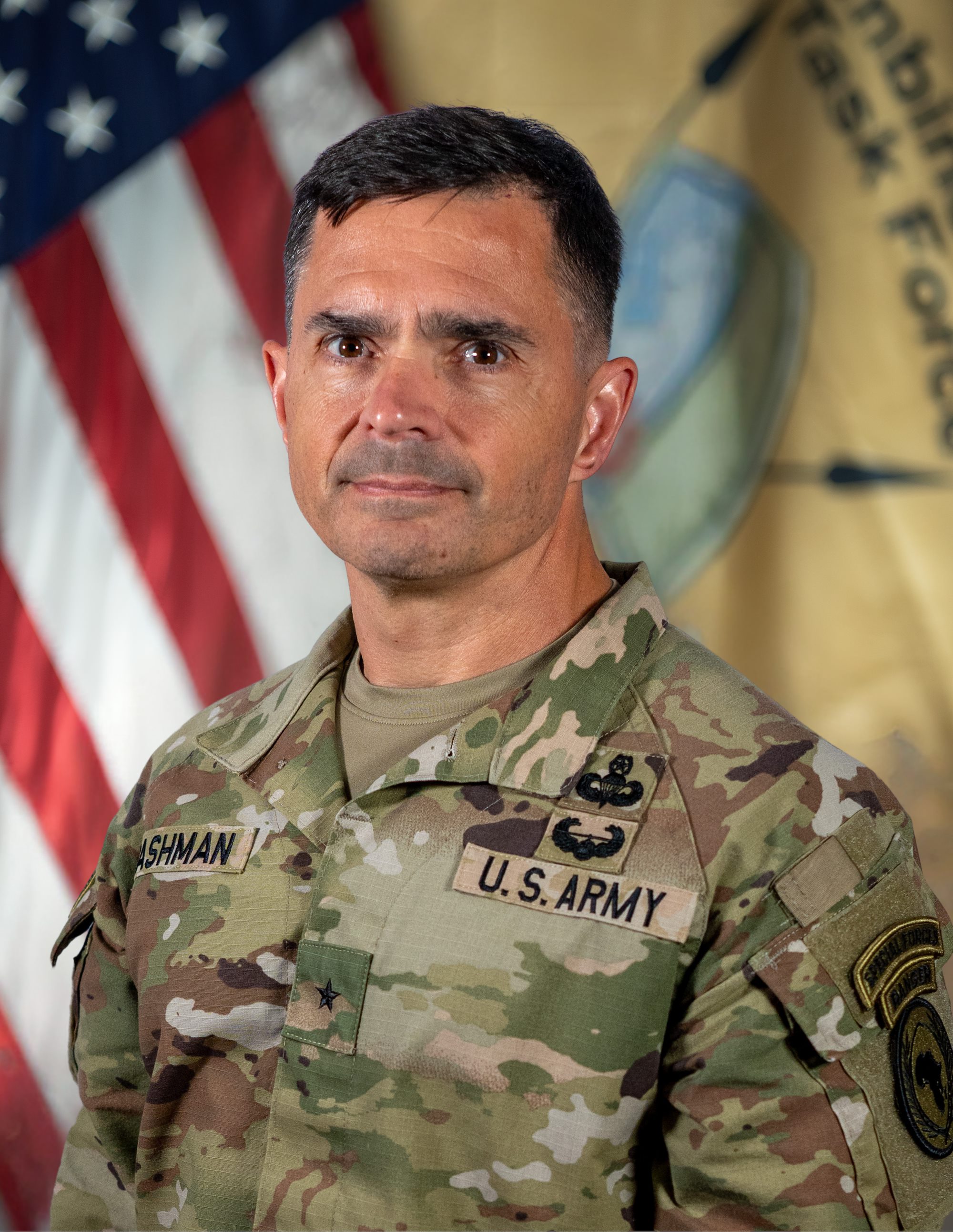 U.S. Marine Corp. General Michael Langley passes the CJTF-HOA flag to U.S. Army Brigadier General Brian T. Cashman at the Combined Joint Task Force - Horn of Africa change of command ceremony, Camp Lemonnier Djibouti Apr 27, 2024. CJTF-HOA is a dynamic; joint and multinational operational headquarters; ensuring a strategic partnership with Djibouti; responds to crises; and supports operations throughout East Africa in order to enhance stability and prosperity.(U.S. Army National Guard Photo by Sgt. 1st Class Cambrin Bassett)