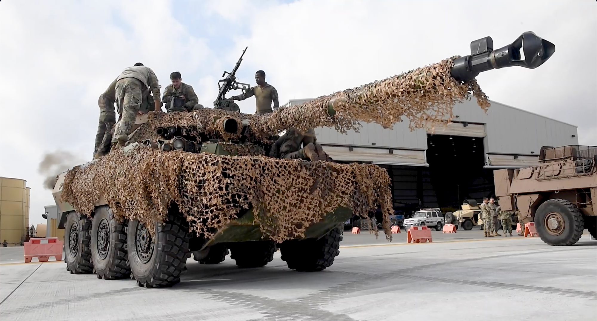 U.S. Soldiers assigned to Combined Joint Task Force - Horn of Africa (CJTF-HOA), receive a capabilities brief from a French Forces in Djibouti service member about the AMX-10 RC wheeled tank during the CJTF-HOA Partner Appreciation Day 2022 celebration at Camp Lemonnier, Djibouti, Nov. 10, 2022. Task force allies and partners set up static and interactive displays to showcase their combined military capabilities. (Department of Defense photo by U.S. Air Force Senior Airman Destani K. Matheny)