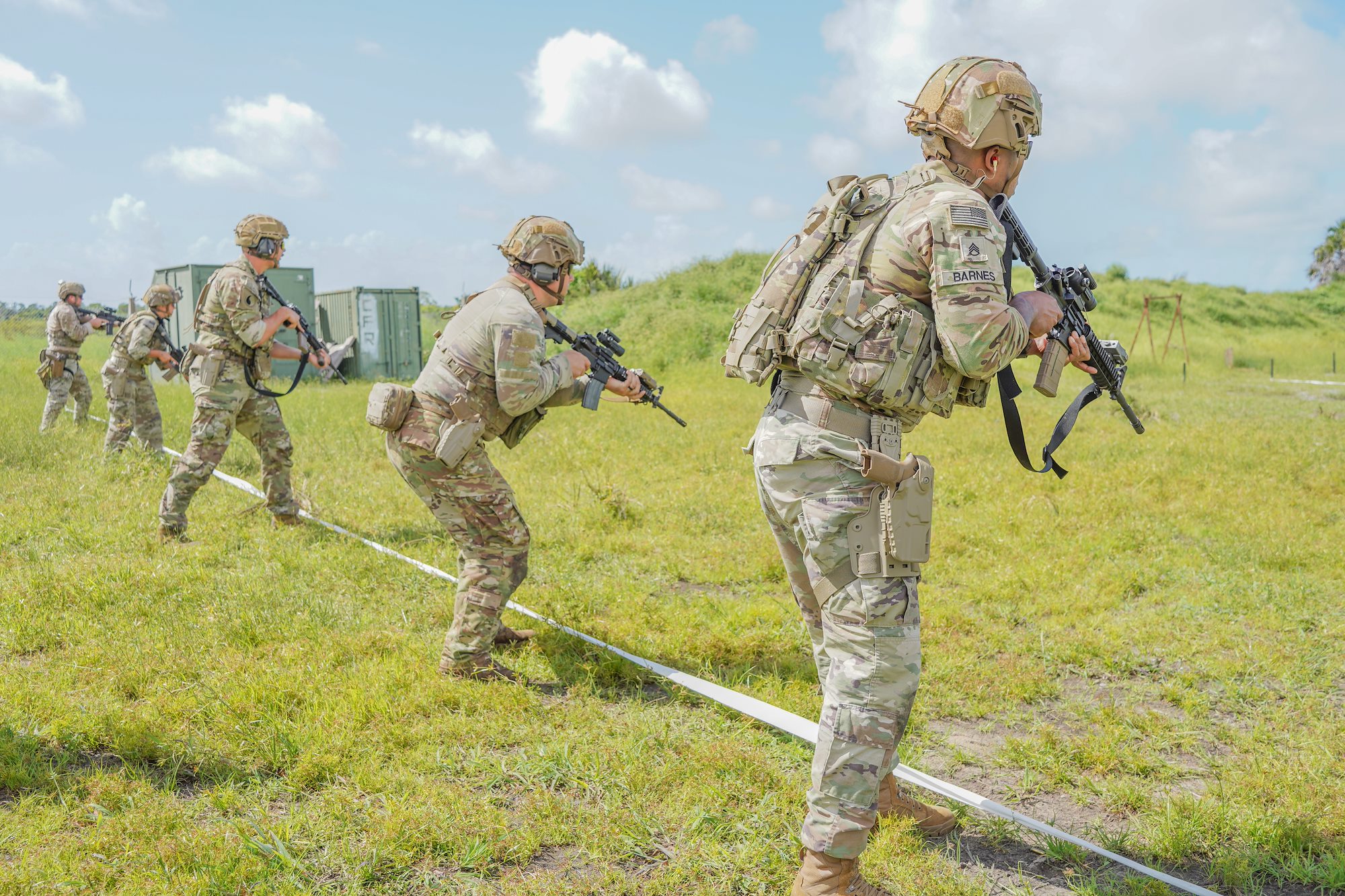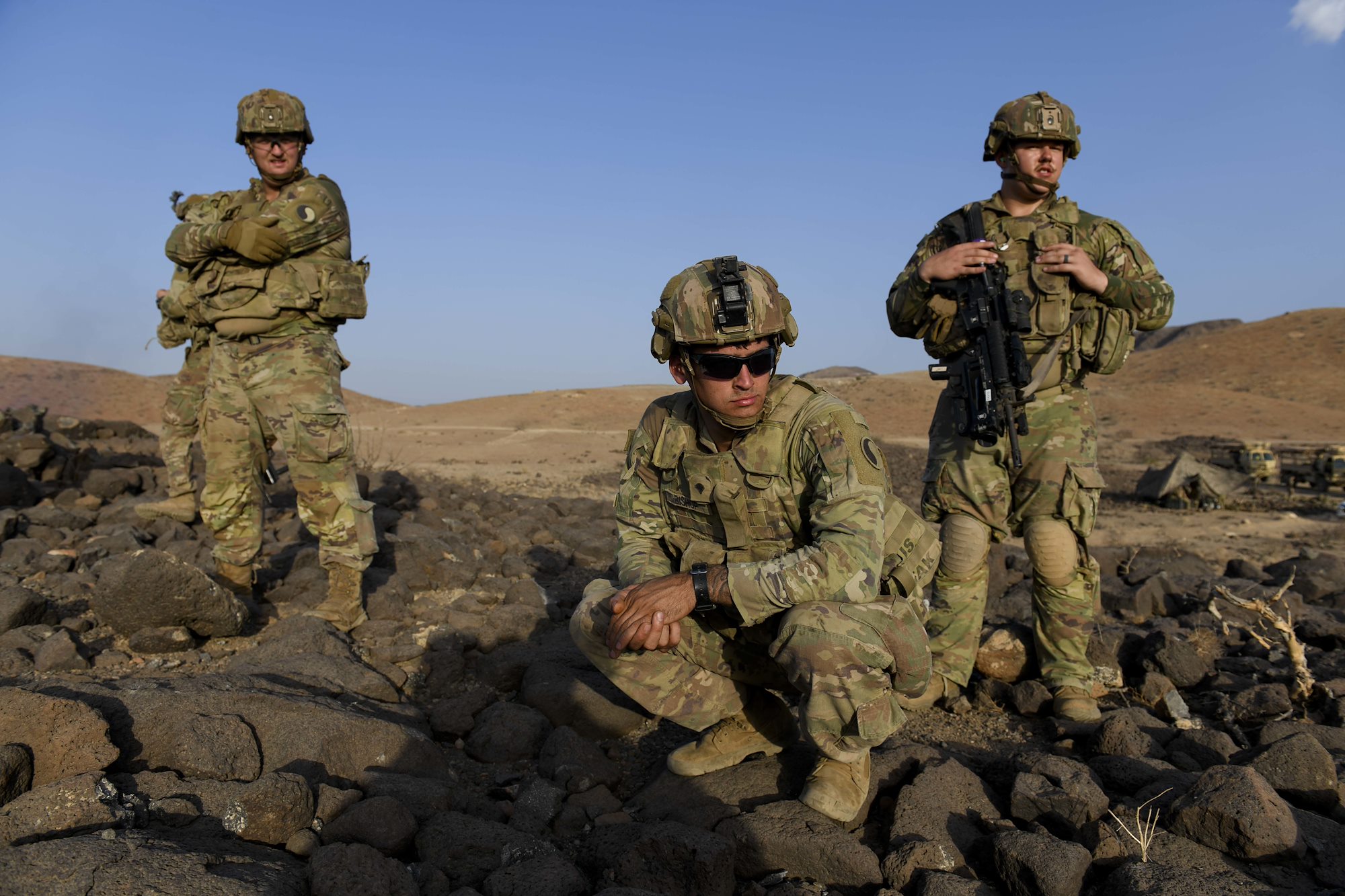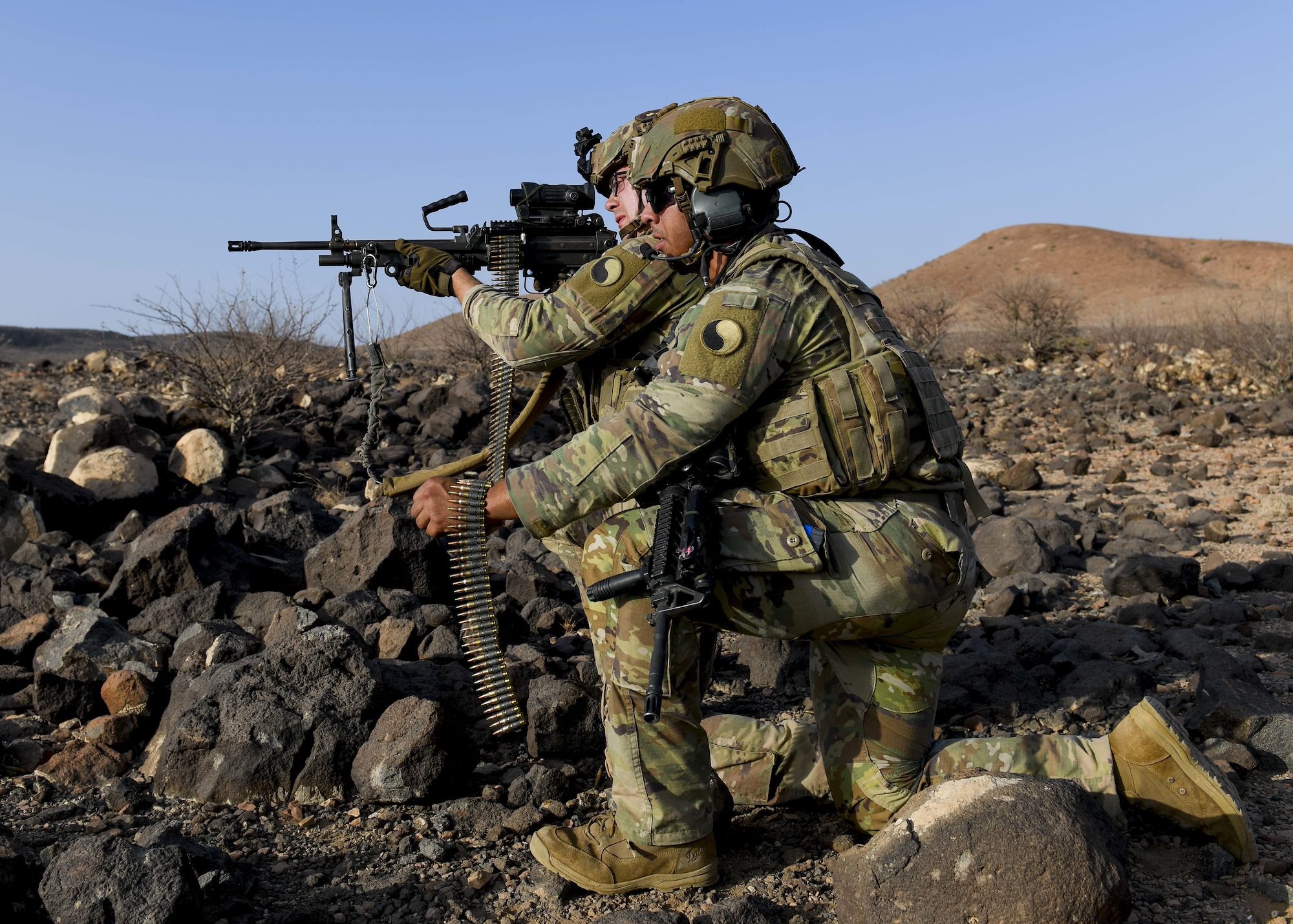Kentucky Army National Guard Soldiers with Task Force Red Dragon, Combined Joint Task Force - Horn of Africa, conduct a squad live-fire exercise in Djibouti at Arta range complex, Djibouti, June 8, 2022. CJTF-HOA, operating from Camp Lemonnier, Djibouti, is a dynamic operational headquarters, supporting missions to counter violent extremist organizations, responding to crises and enhancing stability in East Africa. (U.S. Army photo by Spc. Kiersten Breunig)