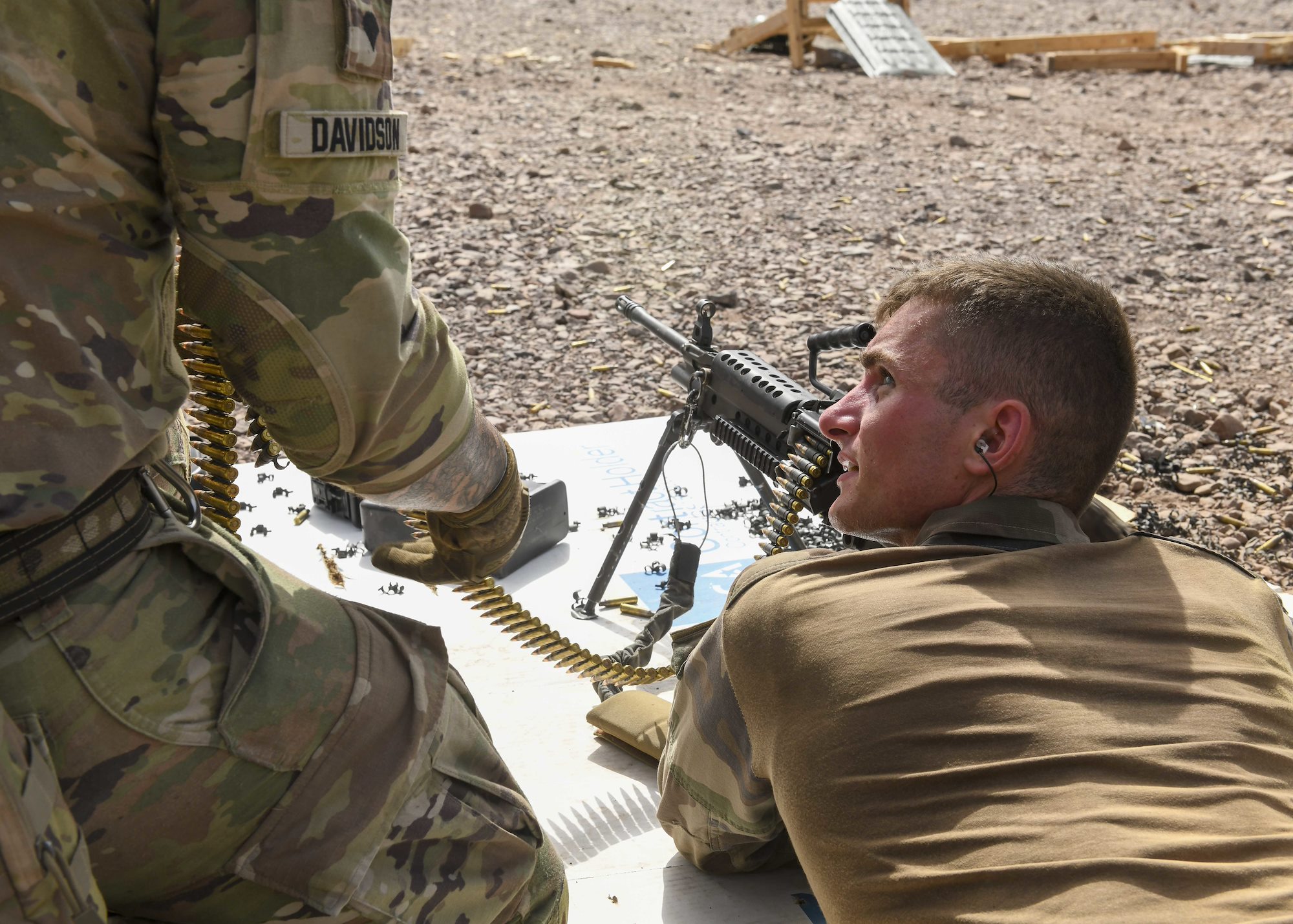 U.S. service members from the U.S. Army National Guard and U.S. Air Force, assigned to Combined Joint Task Force-Horn of Africa (CJTF-HOA), participated in a joint-force combined arms marksmanship competition July 20-25, 2022, at Camp Simba, Kenya. The event hosted 52 participants with individual and team competitions using multiple weapon systems. (U.S. Army National Guard photo by Sgt. Thomas Johnson)