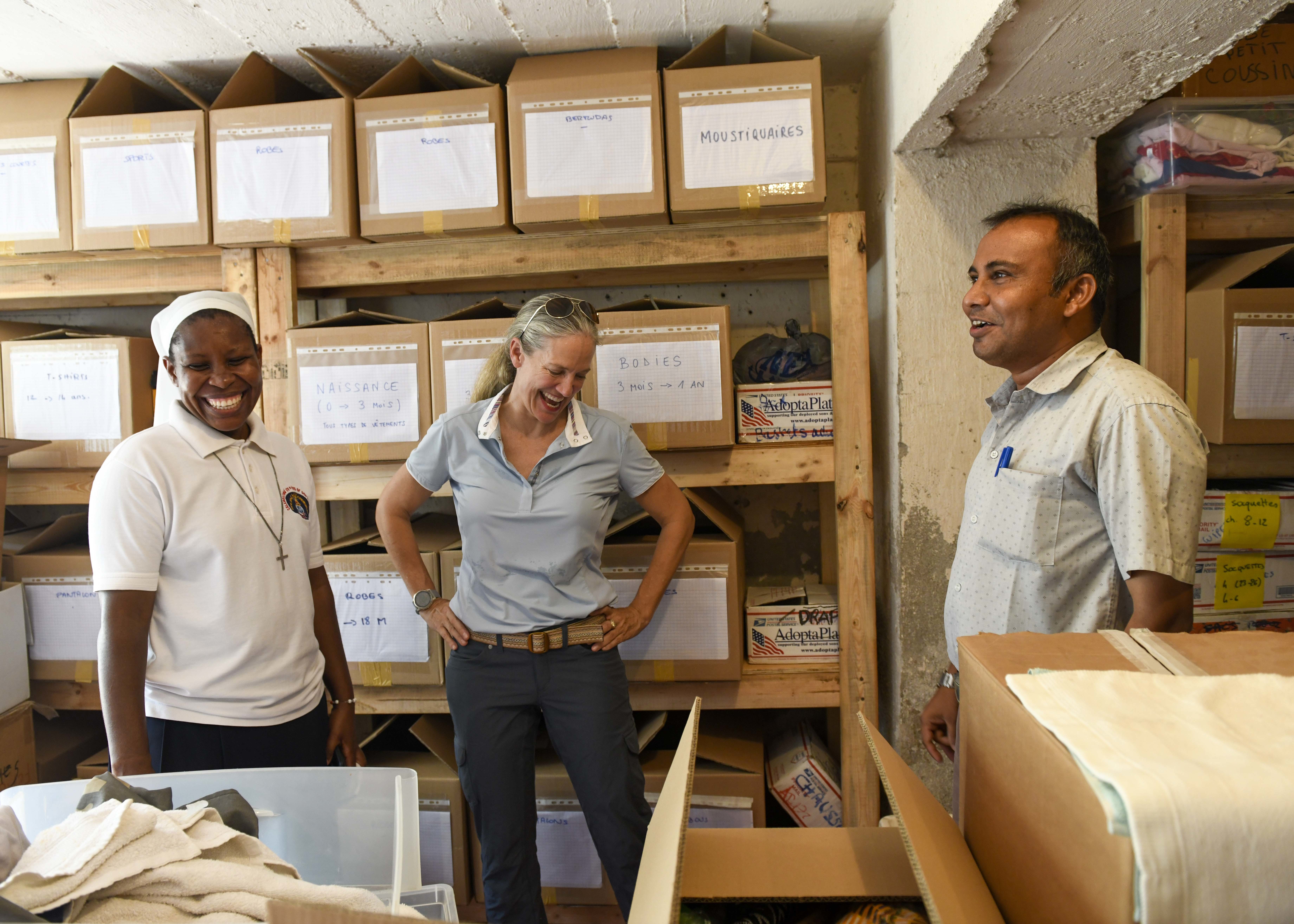 U.S. Army Maj. Gen. Jami Shawley, commanding general of Combined Joint Task Force-Horn of Africa (CJTF-HOA), tours Caritas, a local refugee day center, in Djibouti, June 6, 2022. Service members serving at Camp Lemonnier volunteer often, conducting knowledge exchanges and playing basketball, soccer, and other activities with the children. (U.S. Army photo by Spc. Kiersten Breunig)