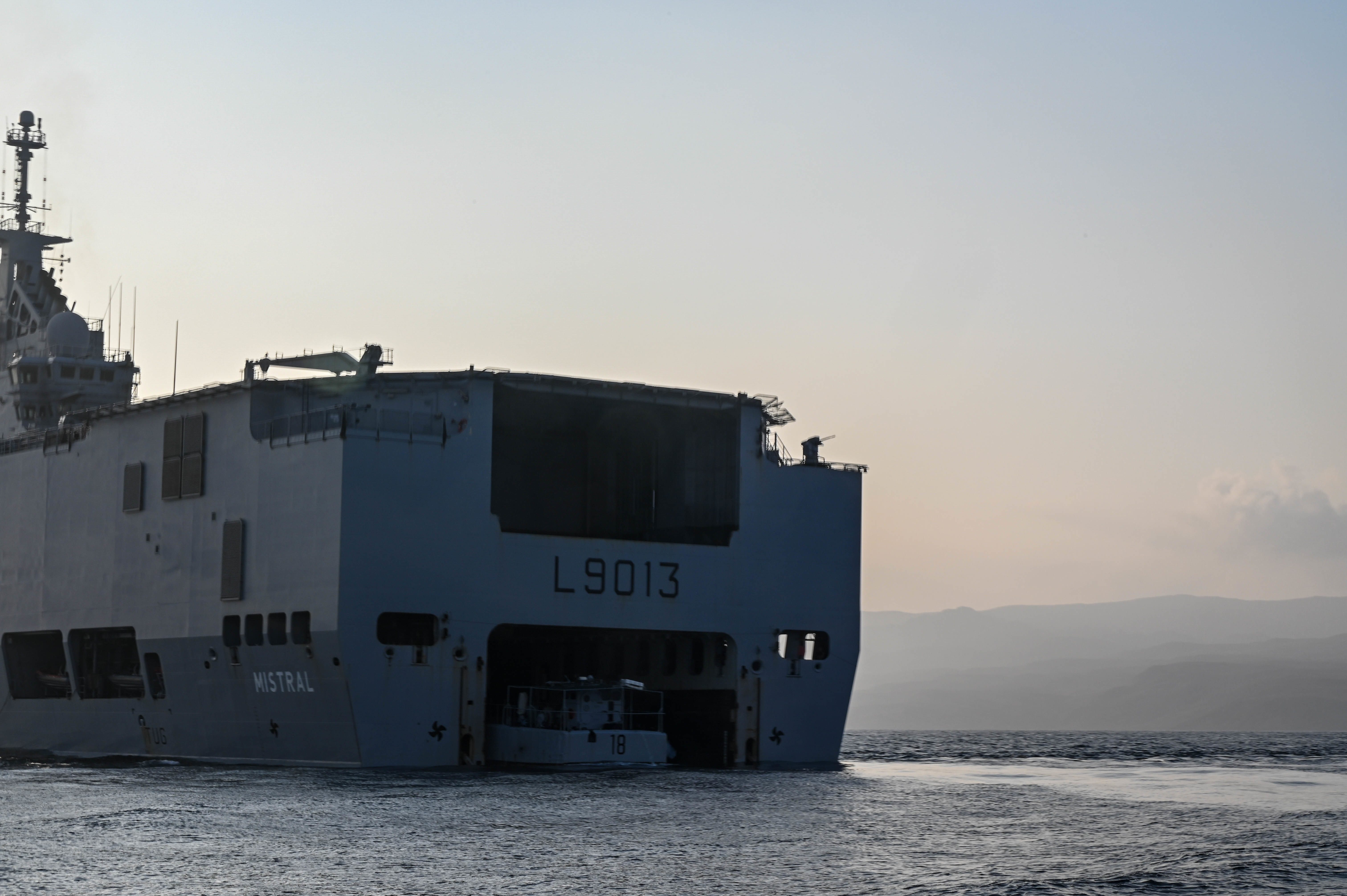 U.S. Navy Reserve members with the Maritime Expeditionary Security Squadron 10 (MSRON 10), Joint Base Charleston, South Carolina, watch as members of the French Armed Forces begin the amphibious assault portion of French-led Joint Exercise WAKRI 22, Port Djibouti, Djibouti, March 13, 2021. French-U.S. partnership during the exercise demonstrates Allied interoperability capabilities in austere and complex locations. (U.S. Air Force photo by Staff Sgt. Alysia Blake)