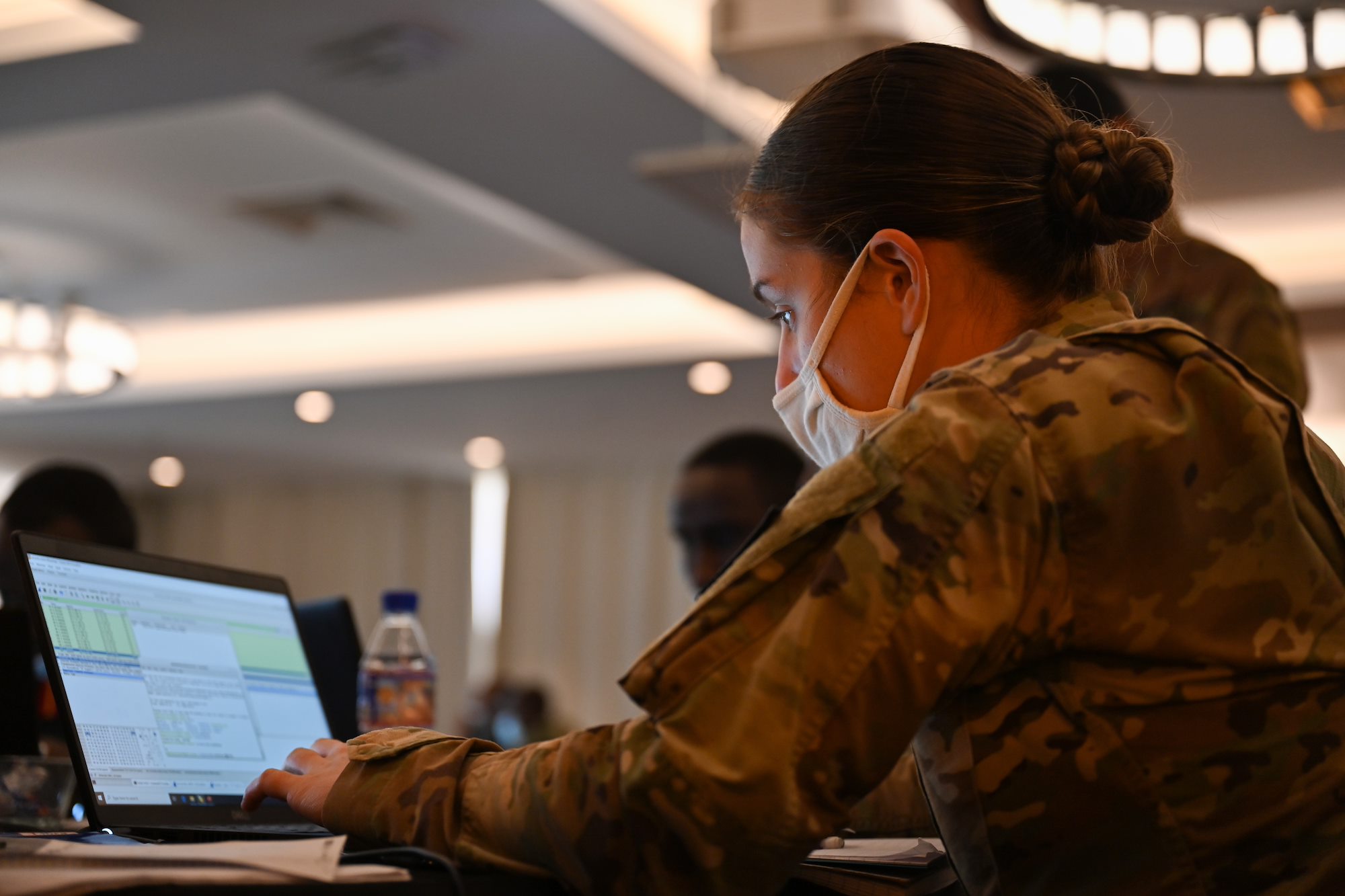 U.S. Army Spc. Josephine Lunde, a communications IT specialist, Combined Joint Task Force- Horn of Africa (CJTF-HOA), completes a host analysis scenario at a cyber defense engagement at the Sheraton Hotel, Djibouti, Feb. 17, 2021. The engagement allowed participants to improve their ability to communicate securely and improve their cyber defense interoperability. (U.S. Air Force photo by Senior Airman Taylor Davis)