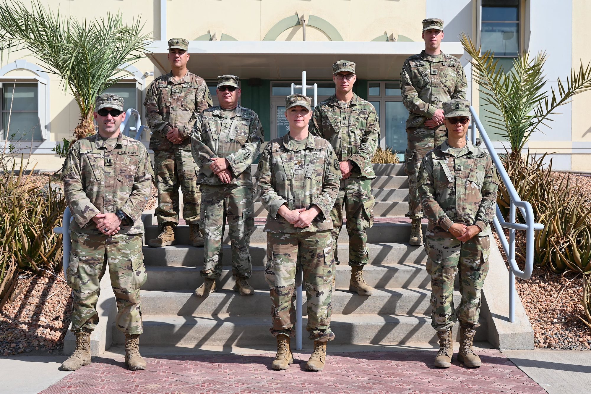The Combined Joint Task Force – Horn of Africa J39 Information Operations Directorate, poses for a photo at Camp Lemonnier, Djibouti, Oct. 28, 2020. U.S. Army Capt. Jake Day, (front left) serves as the information operations deputy director and special technical operations chief, CJTF-HOA. In his civilian capacity, Day serves, as Mayor of Salisbury, Maryland. Day is one of only three full-time mayors to have deployed in support of the Global War on Terrorism. (U.S. Air Force photo by Tech. Sgt. Dana J. Cable)