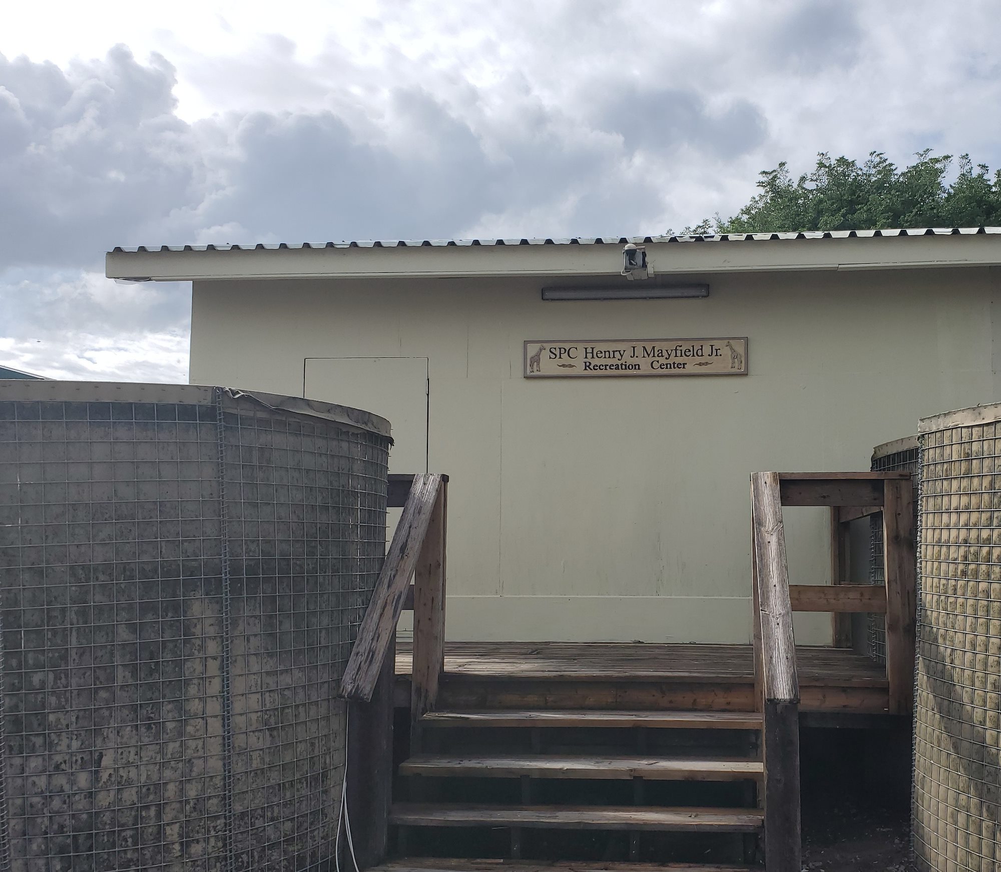 Personnel at Manda Bay Airfield, Kenya, held a dedication ceremony to rename the location’s morale, welfare and recreation facility the Spc. Henry J. Mayfield Jr. Recreation Center at Manda Bay Airfield, Kenya, May 21, 2020. The facility’s namesake, U.S. Army Spc. Henry J. “Mitch” Mayfield Jr., was killed in action Jan. 5, 2020, during an attack on Manda Bay Airfield by a terrorist organization. Mayfield, a Chicago native, was deployed to Kenya with the 1st Battalion, 58th Aviation Regiment, 164th Theater Airfield Operations Group, from Fort Rucker, Alabama. (U.S. Army Photo by Chief Warrant Officer 2 Bryan Nelson)
