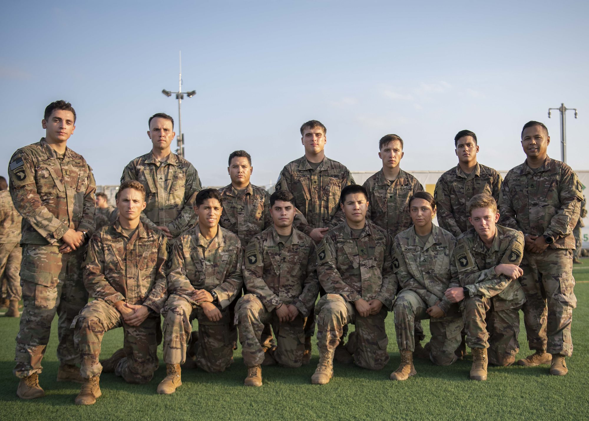 U.S. Army Soldiers from the 101st Division, 2nd Battalion, 506th Infantry Regiment, 4th Platoon, East African Response Force (EARF), pose for a group photo after the EARF’s best platoon competition at Camp Lemonnier, Djibouti, Oct. 25, 2019. 4th Platoon was the winner of the EARF’s best platoon competition. (U.S. Air Force photo by Staff Sgt. J.D. Strong II