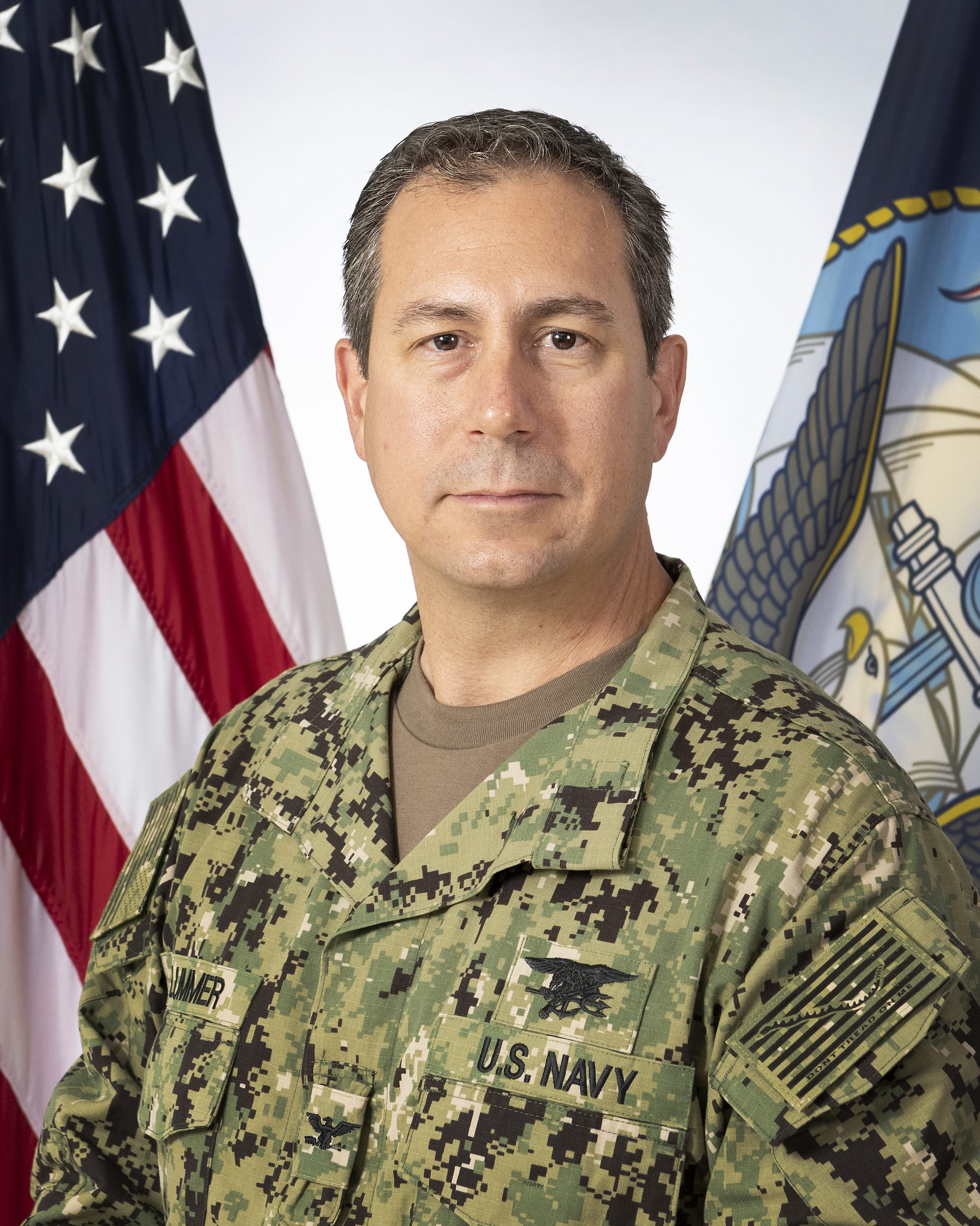 U.S. Navy Capt. Robert Carpenter, middle left, the command chaplain for Combined Joint Task Force-Horn of Africa (CJTF-HOA), poses for a photo with multinational military partners while attending a cultural exchange event at Camp Lemonnier, Djibouti, March 27, 2019. CJTF-HOA holds monthly exchange events with multinational military partners affiliated with Camp Lemonnier to strengthen alliances and attract new partners in the combined joint military environment. (U.S. Air Force photo by Tech. Sgt. Shawn Nickel)