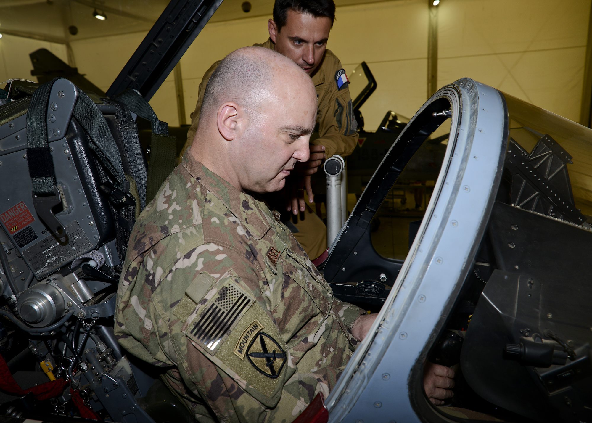 U.S. Air Force Brig. Gen. James R. Kriesel, deputy commanding general of Combined Joint Task Force-Horn of Africa (CJTF-HOA), sits in the cockpit of a French air force Mirage 2000-5 during his visit to French Air Force Base 188, Djibouti, Feb. 19, 2019. Kriesel graduated from Euro-NATO Joint-Jet-Pilot-Training in 1990, and is a command pilot with more than 2,600 flight hours in an A-10 Thunderbolt II and F-15C Eagle. (Courtesy Photo)