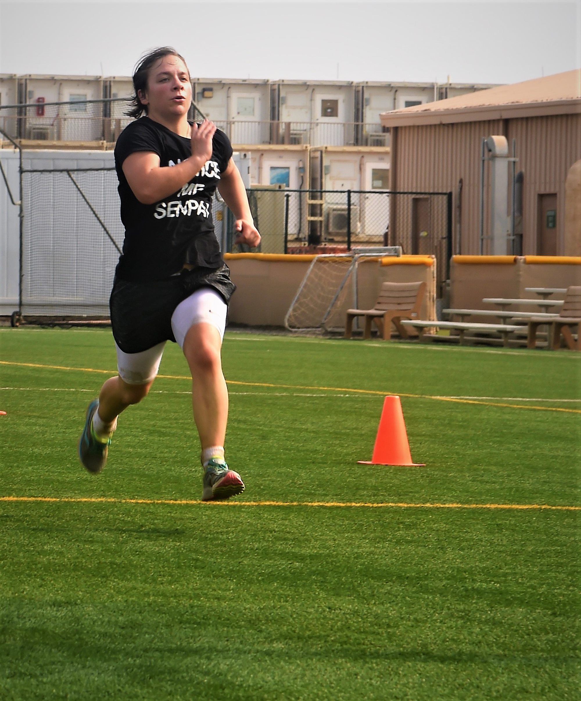 A service member of Combined Joint Task Force – Horn of Africa sprints to the finish of the Joint Warrior Competition, Camp Lemonnier, Djibouti, Sep. 9, 2017. Beforehand, competitors endured a 7-km run, 600-meter swim, 7-km ruck march, pull-ups, sit-ups, air squats, hand-release push-ups, and high crawl. The event was an opportunity for participants to appreciate the joint military force, showcase teamwork and remember 9/11. (U.S. Air National Guard photo by Tech. Sgt. Andria Allmond)