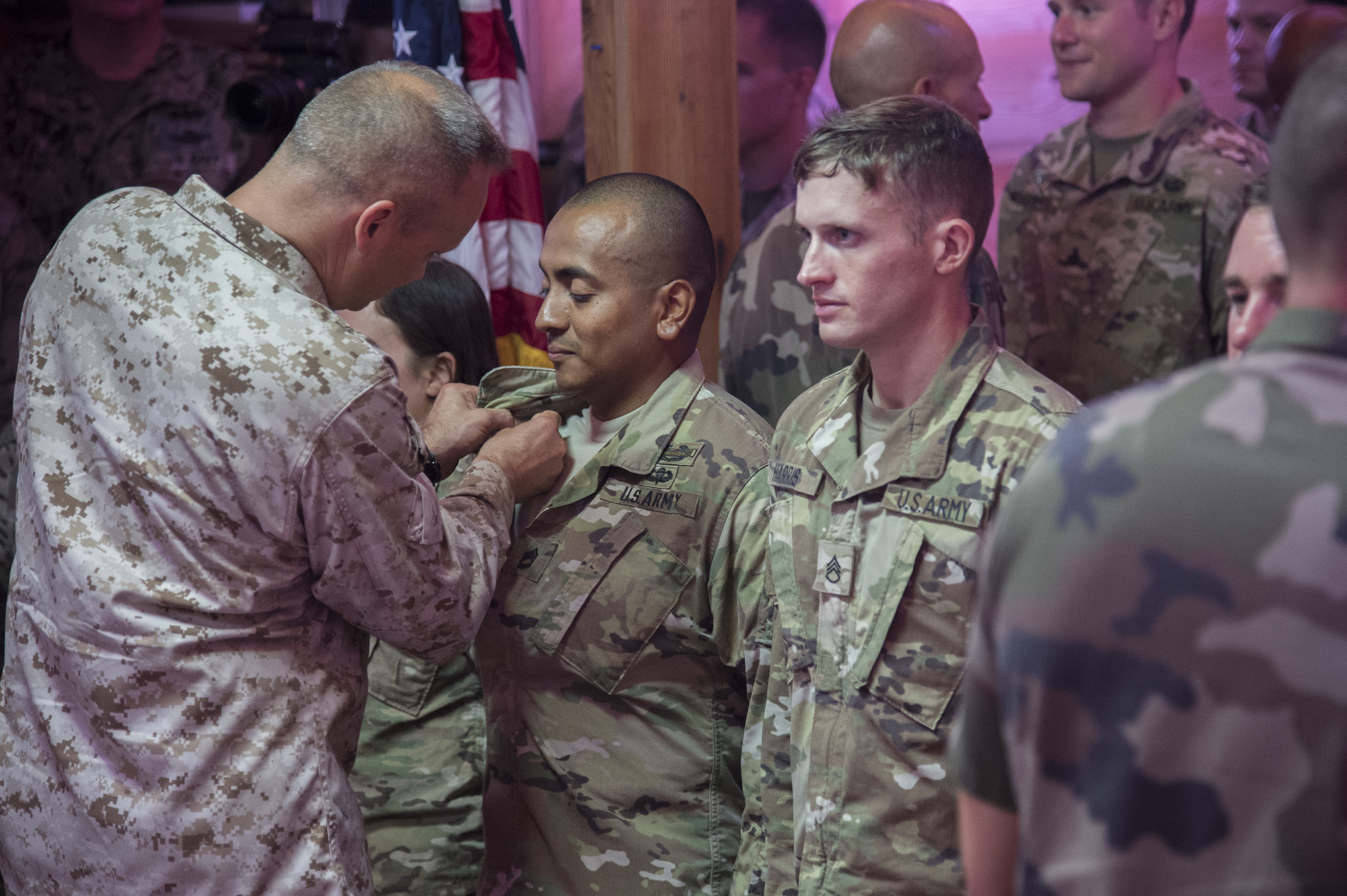 Service members from the U.S. and Somali National Army join for an Iftar, the nightly meal that ends the day’s fast during Ramadan, at the Mogadishu International Airport in Mogadishu, Somalia, June 5, 2017. U.S. Army Brig. Gen. Miguel Castellanos, Combined Joint Task Force-Horn of Africa deputy commanding general in Somalia and Mogadishu Coordination Cell director, hosted the Iftar, strengthening bonds between the U.S. and Somali militaries. (U.S. Air Force Photo by Staff Sgt. Eboni Prince)
