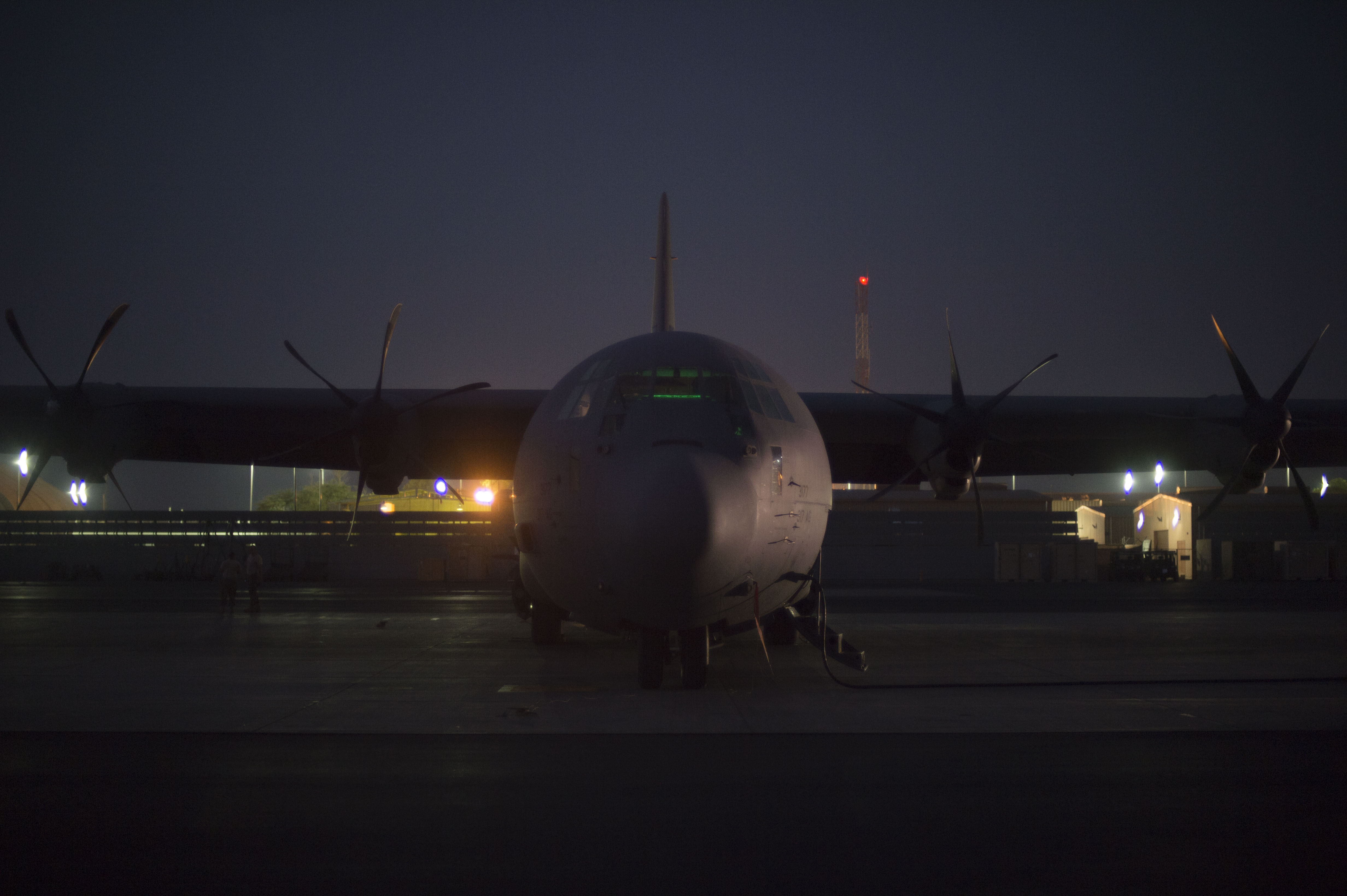 A U.S. Air Force C-130J Hercules rests on the airfield in preparation for cargo and passengers to be transported during an East African Response Force validation exercise May 27, 2016, at Camp Lemonnier, Djibouti. The Hercules and its crewmembers are deployed from Dyess Air Force Base, Texas. (U.S. Air Force photo by Staff Sgt. Eric Summers Jr.)