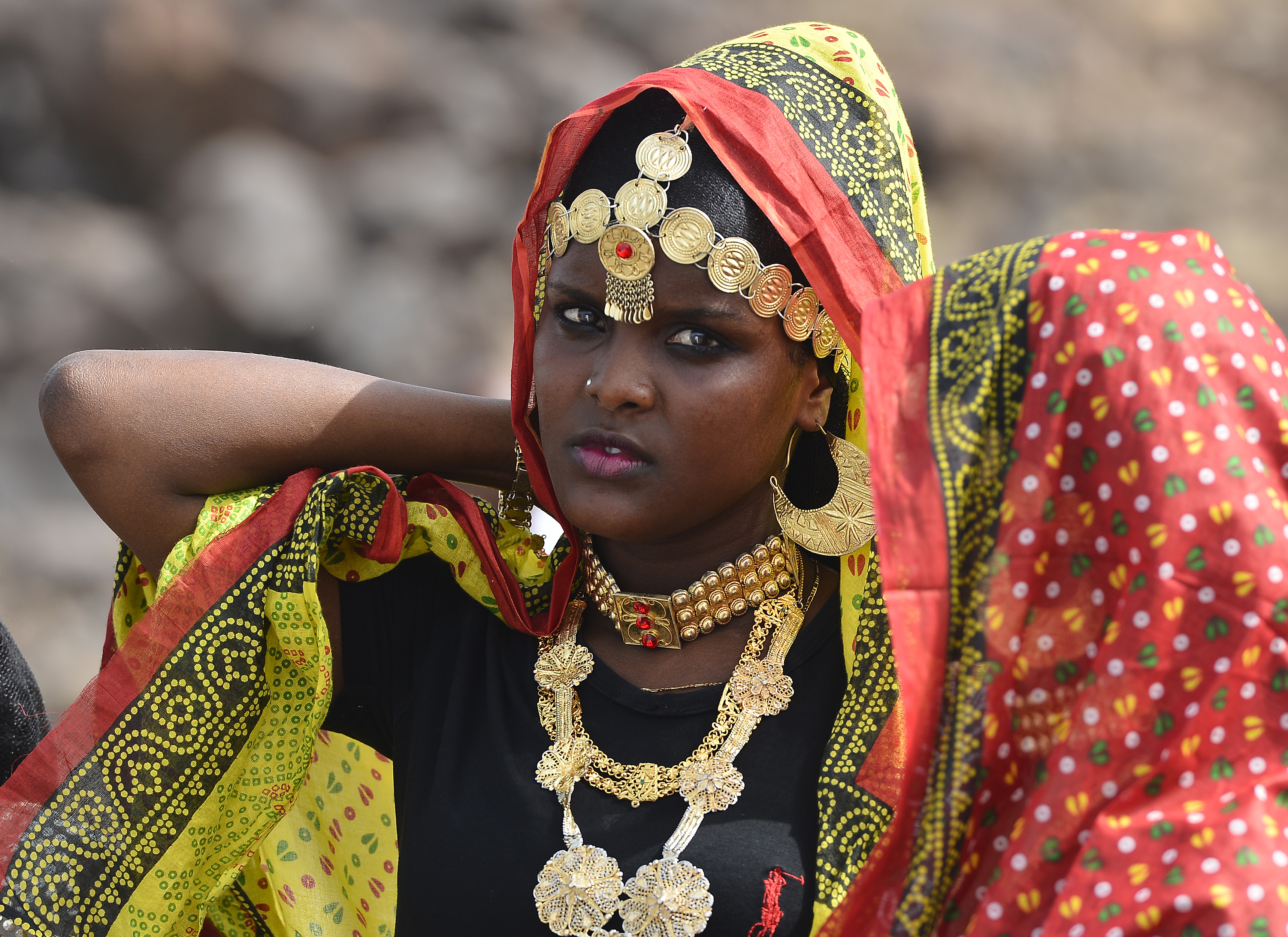 An Afar woman prepares to dance during the 21st Induction Ceremony of the Sultan of Gobaad in Dikhil, Djibouti, May 22, 2015. The Afar tribe is one of two main ethnic groups in Djibouti, shaping their historical customs and culture for hundreds of years. (U.S. Air Force photo by Senior Airman Nesha Humes)