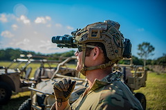 U.S. Air Force Staff Sgt. Erica Purdy and U.S. Army Spc. Hailey Tompkins, medical technicians with the 475th Expeditionary Air 75th Expeditionary Air Base Squadron (EABS), don protective helmets before the start of a joint training exercise at Camp Simba, Kenya, Aug. 24, 2021. The 475th EABS medics received tactical vehicle training and practiced life-saving tactical combat casualty care techniques with U.S. Air Force Special Tactics Airmen from the Expeditionary Special Tactics Squadron Africa.
