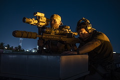 Marines taking part in the Corporals Course set up a radio antenna at a checkpoint Camp Lemonnier, Djibouti, Nov. 3, 2023. Students were tested on a variety of skills in practical exercises throughout the course. (Department of Defense photo by U.S. Air Force Staff Sgt. Dylan Gentile)