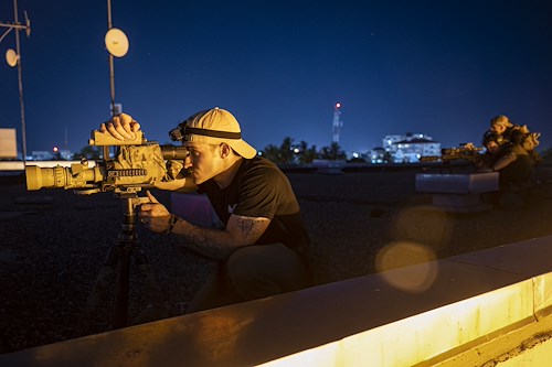 Members of the East Africa Response Force (EARF), in plainclothes in order to blend in with Department of State personnel, man a security observation position at the U.S. Embassy in Tanzania during an Emergency Deployment Readiness Exercise Oct. 10, 2023, at Dar es Salaam, Tanzania. The EARF, assigned to Combined Joint Task Force Ð Horn of Africa (CJTF-HOA), is a U.S. Army National Guard infantry company tasked with providing rapid security augmentation, humanitarian aid and disaster response assistance, and military-assisted departure of Department of State personnel at U.S. embassies during crises throughout the African continent. (U.S. Air Force photo by Tech. Sgt. Ridge Shan)