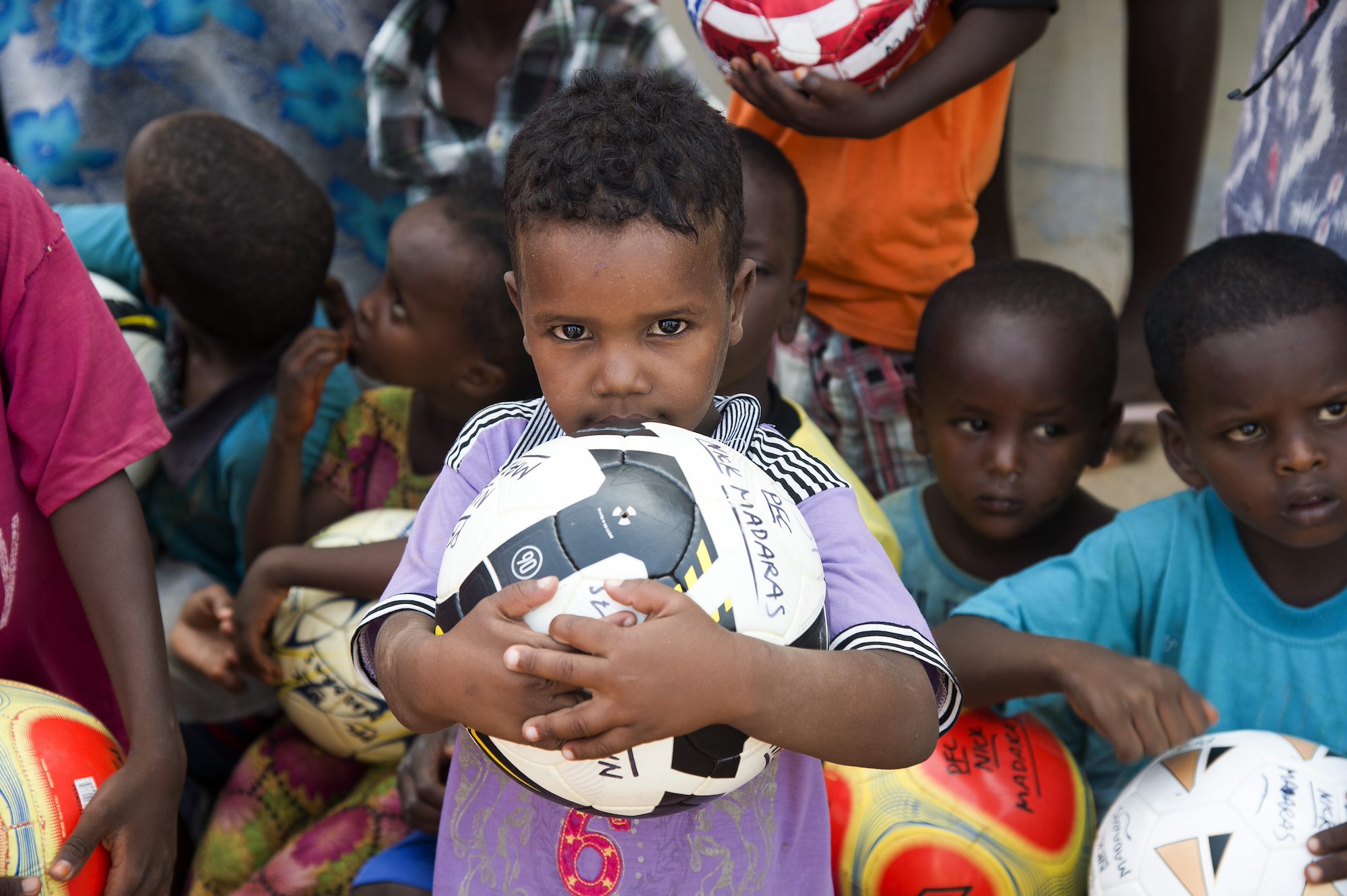 The 404th CA BN team received more than 40 soccer balls from the organization, donated by people all across the U.S., to distribute to the children of Chebelley, who swarmed the team as soon as they arrived.