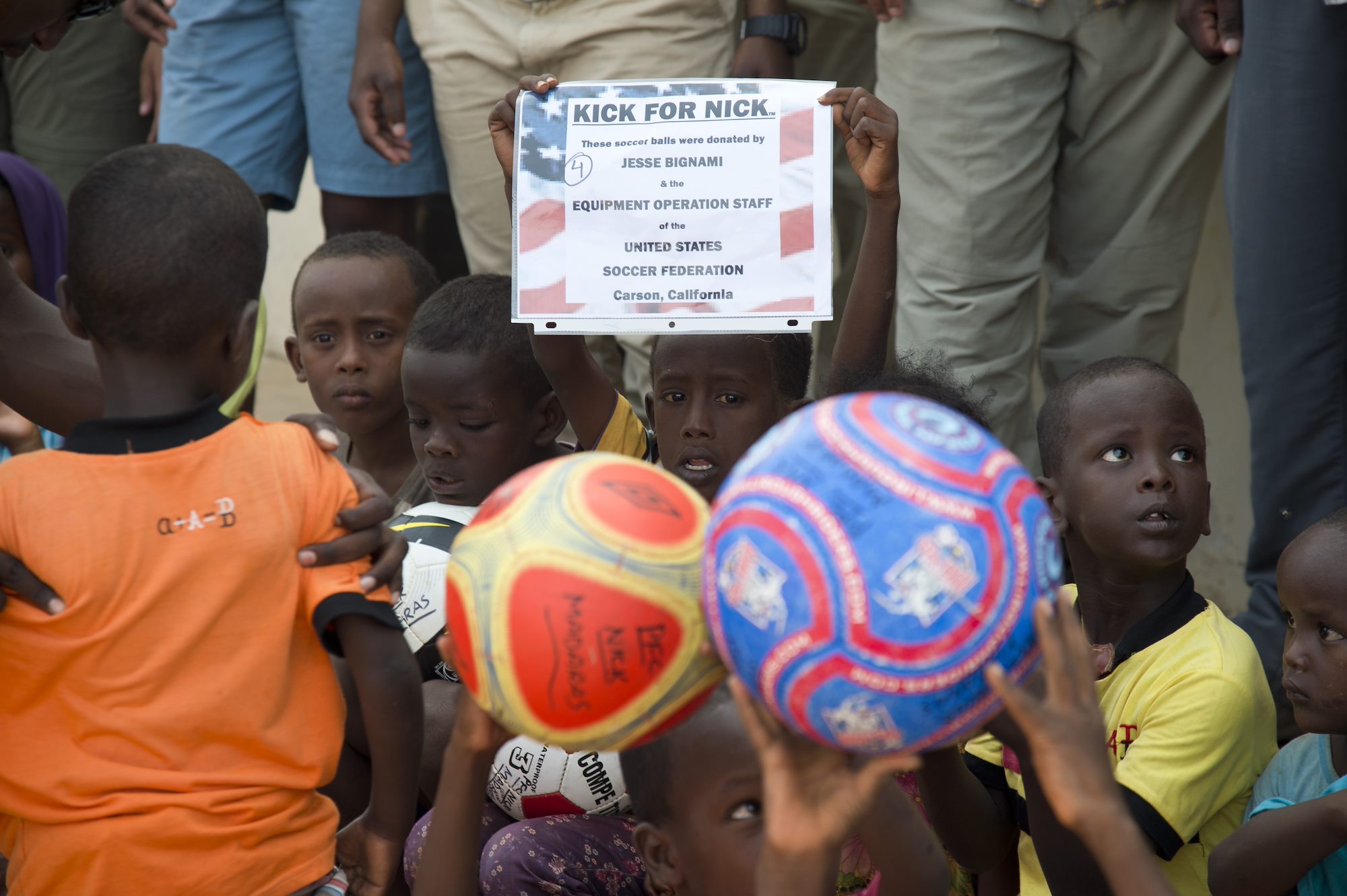 Members of the U.S. Army’s 404th Civil Affairs Battalion (Airborne) and volunteers assigned to Combined Joint Task Force-Horn of Africa, visited Chebelley Village, Djibouti, May 21, 2015, to continue a tradition born from the memory of one soldier whose love for soccer has led to a world of giving.