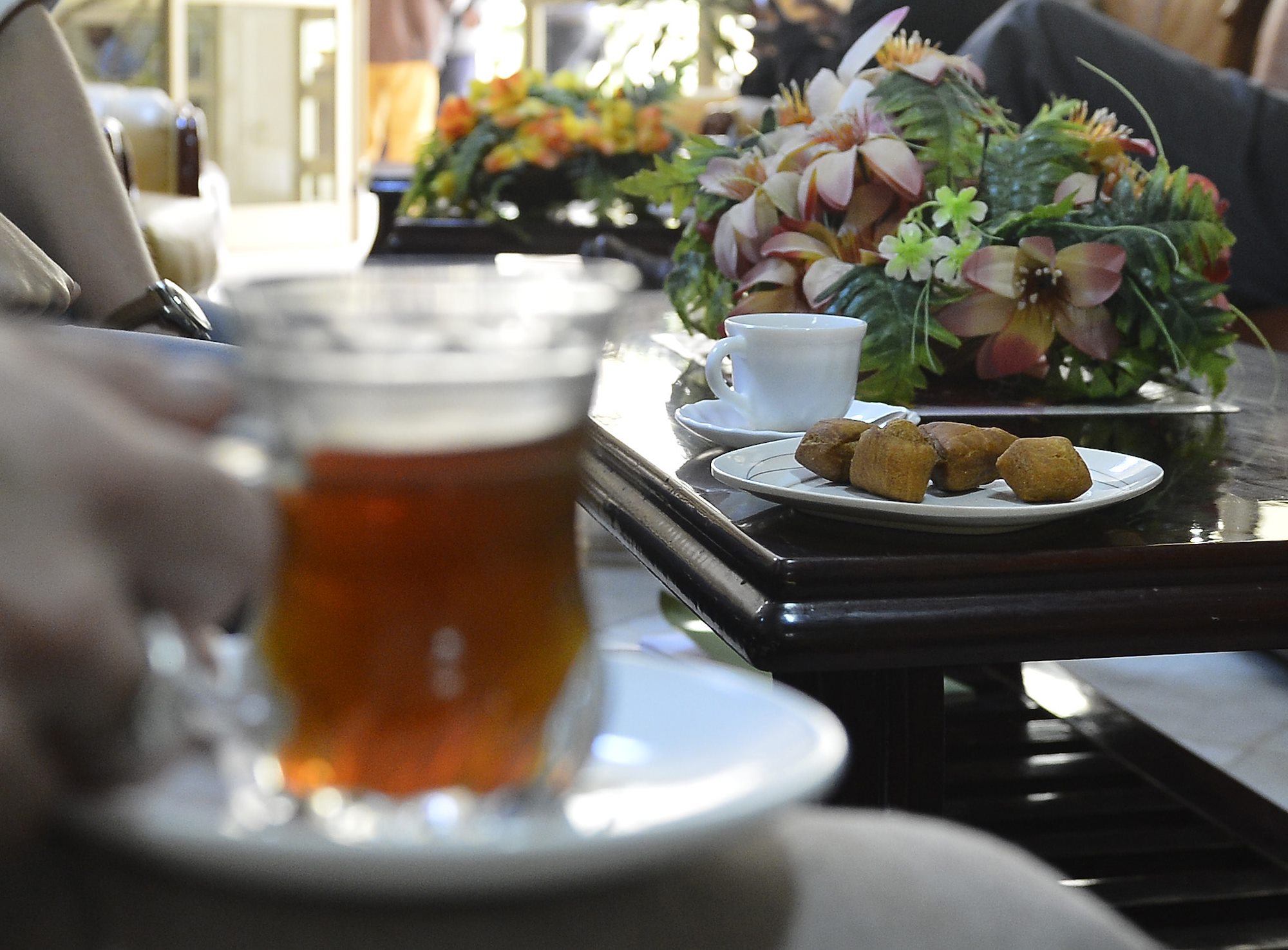 The U.S. Army 404th Civil Affairs Battalion Veterinary Cell Team dine during a traditional, Ethiopian coffee break at the Third International Veterinary Education Conference at Haramaya University in Dire Dawa, June 18, 2015. The team, assigned to Combined Joint Task Force- Horn of Africa, met with professors and key leadership to discuss livestock productivity, frequent animal endemic diseases, veterinary education and health food safety. (U.S. Air Force photo by. Senior Airman Nesha Humes)