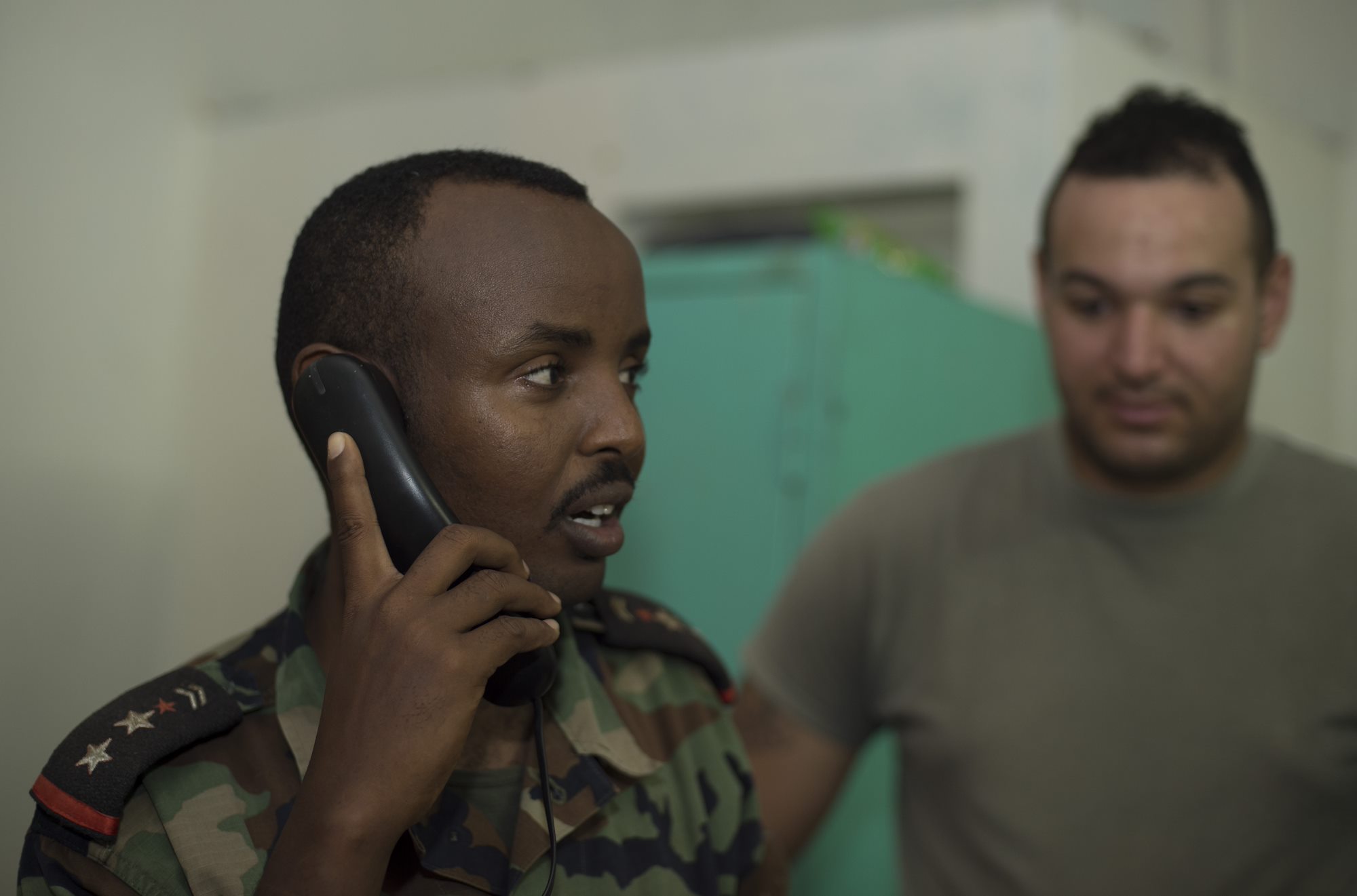A Djibouti Armed Forces service member places a call to confirm connectivity of a Voice over Internet Protocol phone during validation training Sept. 28, 2016, at FAD Headquarters in Djibouti. While conducting the best practices training, the U.S. Army technicians assigned to Combined Joint Task-Horn of Africa also held an Africa Data Sharing Network validation with the FAD soldiers, to prepare them to deploy to Somalia. The ADSN provides network and Voice over Internet Protocol capabilities between the several African countries participating in the Africa Union Mission in Somalia. (U.S. Air Force photo by Staff Sgt. Eric Summers Jr.)