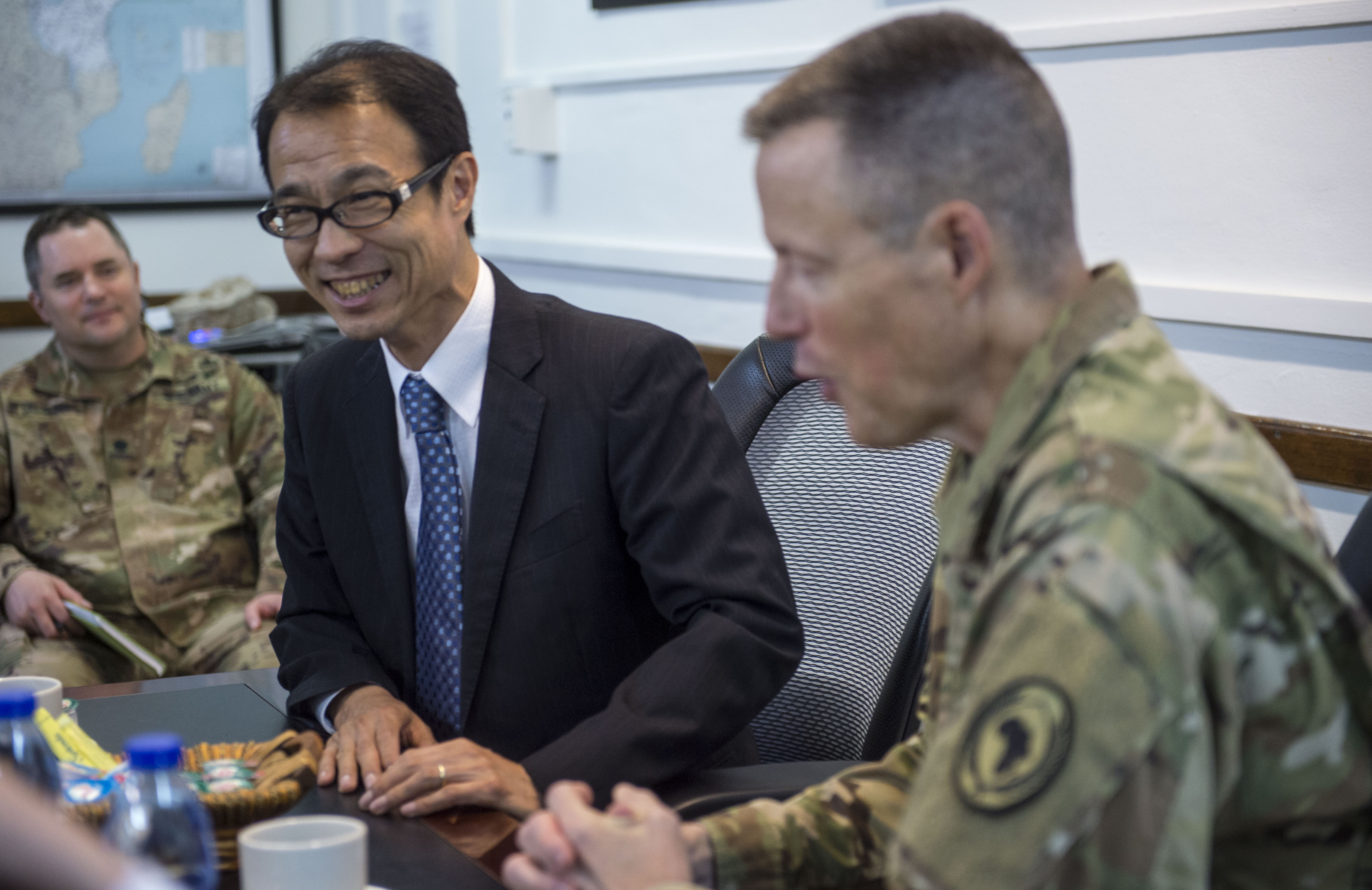 CJTF-HOA works alongside and builds partnerships with our U.S. and international partners to improve security and stabilization in East Africa. The U.S. and Japanese ambassadors to Djibouti visited Camp Lemonnier, Djibouti and discussed this strong partnership with our Deputy Commanding General, U.S. Army Brig. Gen. William Zana.
