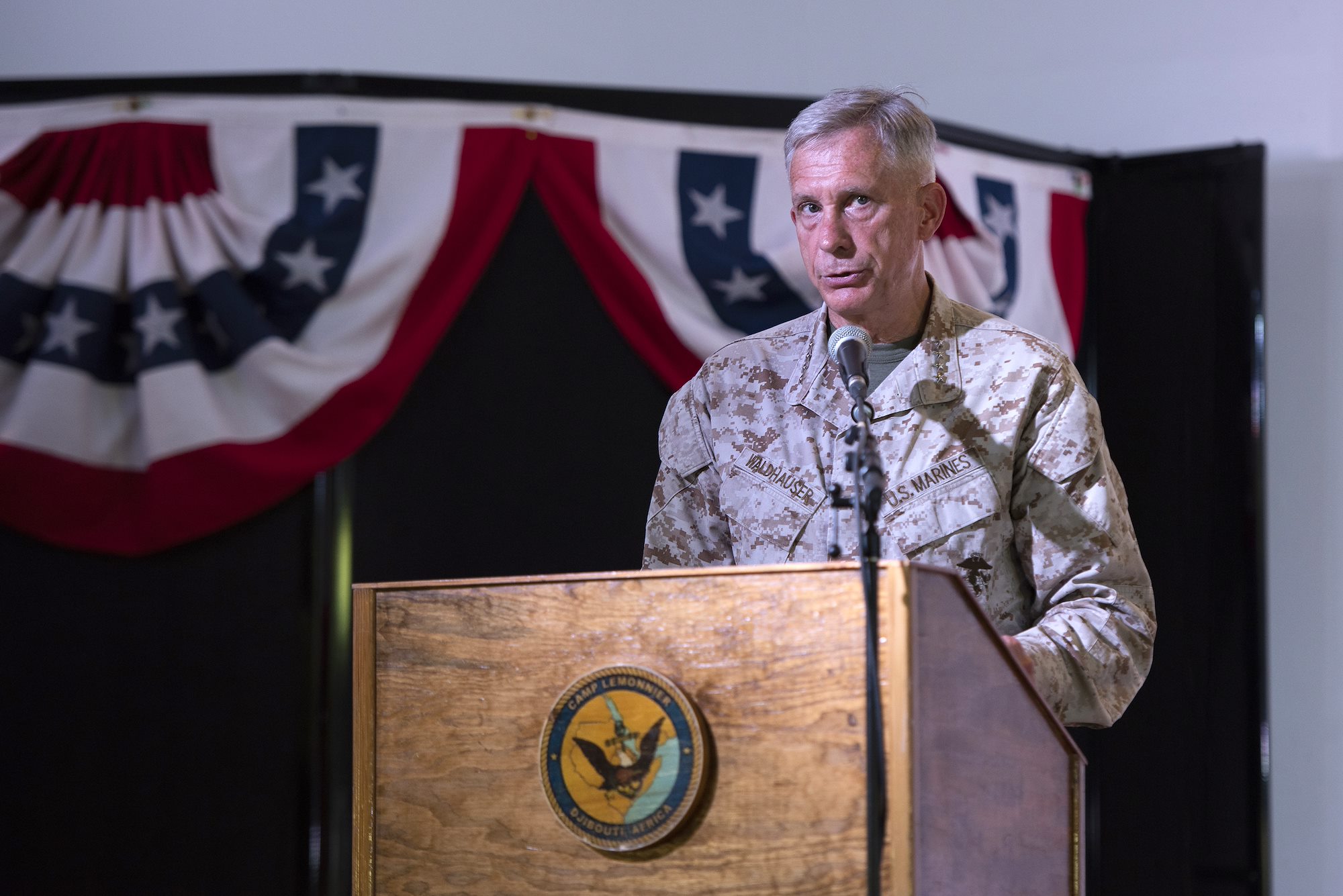 “It is a pleasure for me to be part of this change of command ceremony,” said Waldhauser. “We give all of our support and pride to Brig. Gen. Zana for the job that he’s done here both in the past six weeks and as he continues on as the deputy commander.”