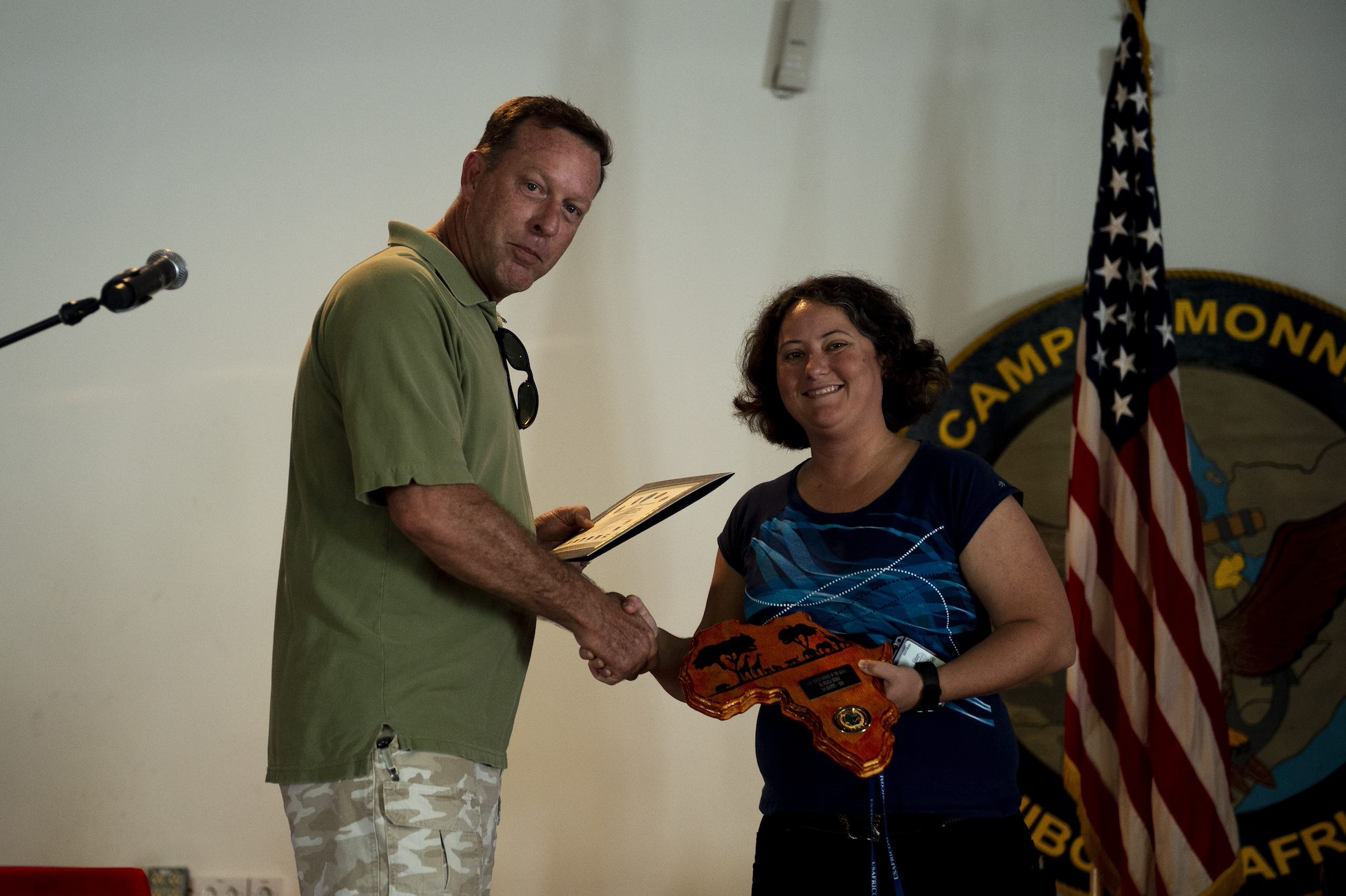 Petty Officer 1st Class Kimberly A. Decker, an intelligence specialist at CJTF-HOA, was recognized as the Senior Service Member of the Quarter.
