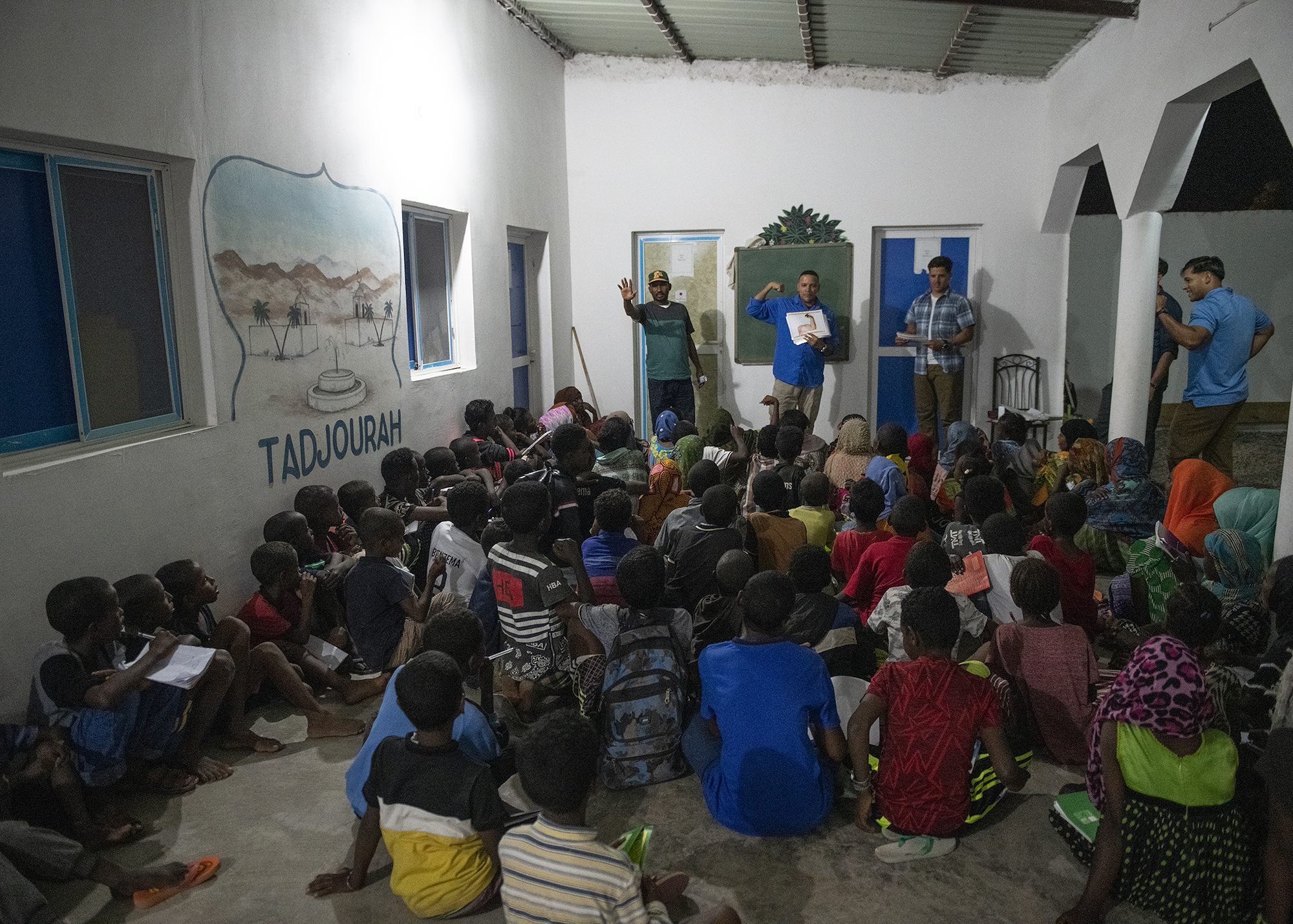 More than 90 Djiboutian youth and adults attended the English Discussion Group Feb. 12, where local participants develop practical linguistic and rhetorical skills through conversation with English-speaking U.S. service members.