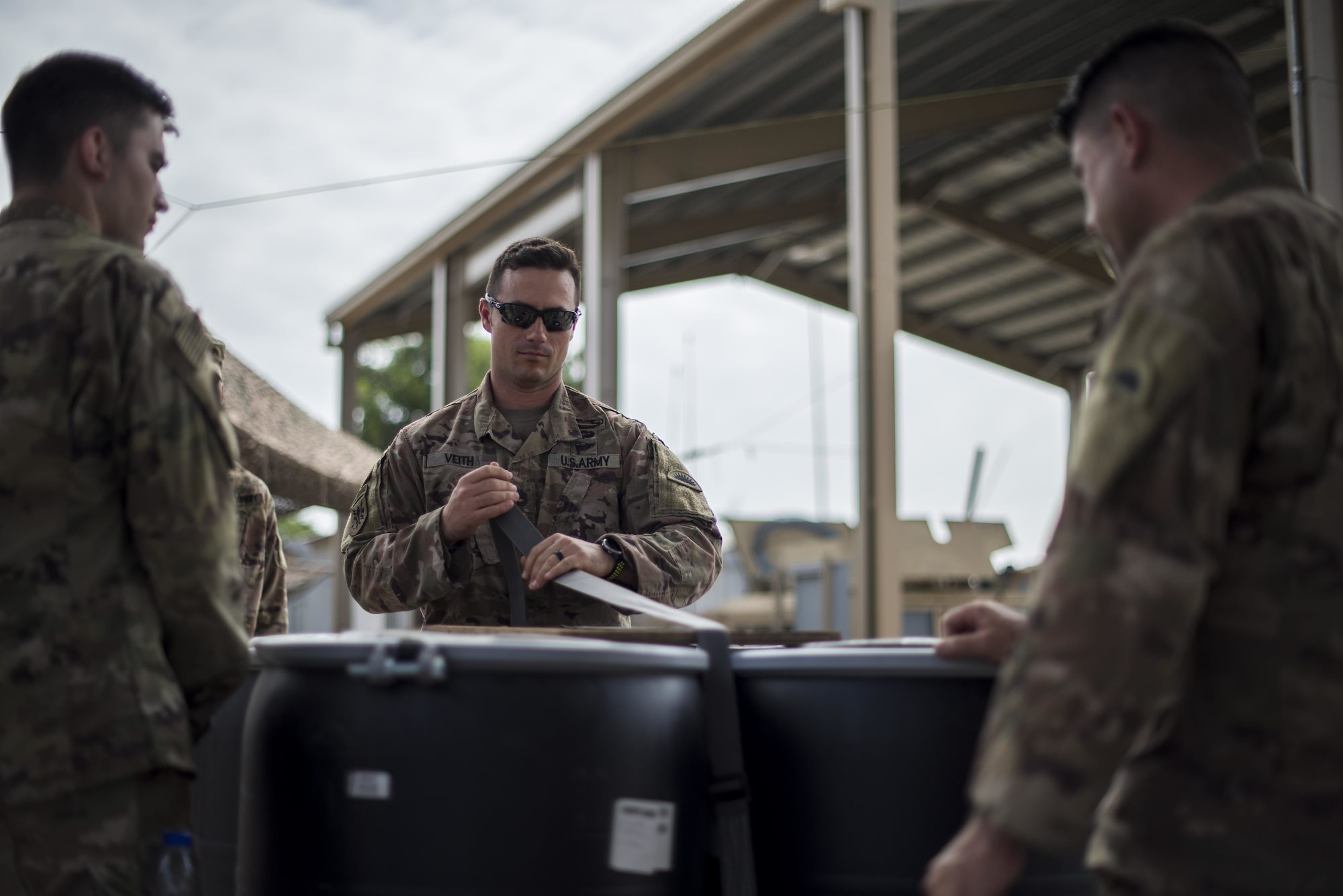 Scenarios like this influenced personnel from Combined Joint Task Force-Horn of Africa (CJTF-HOA) to participate in the air assault sling load training course Feb. 27. The course, led by U.S. Air Force Col. Kjäll Gopaul, director of CJTF-HOA’s Communications Directorate, and U.S. Army 1st Lt. Aaron Goodwin, Task Force Guardian Headquarters Company platoon leader, CJTF-HOA, trained service members on properly preparing, building and safely securing an external load for transport by helicopter.